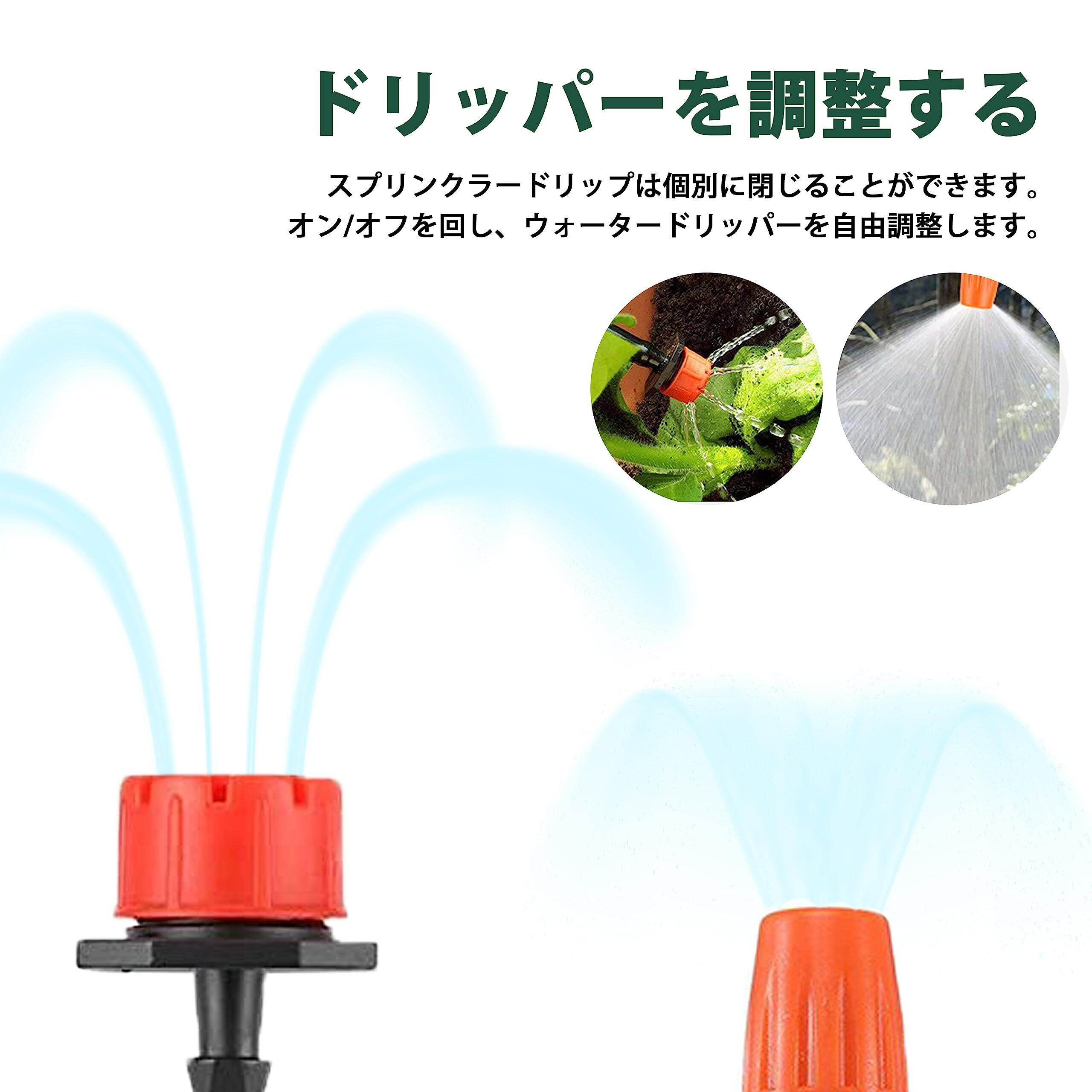 【節水】:従来のスプリンクラーよりも最大70%多くの水を節約できます。精密ドリップ散水システムは、植物の根元にゆっくりと正確に適量の水をを供給します。