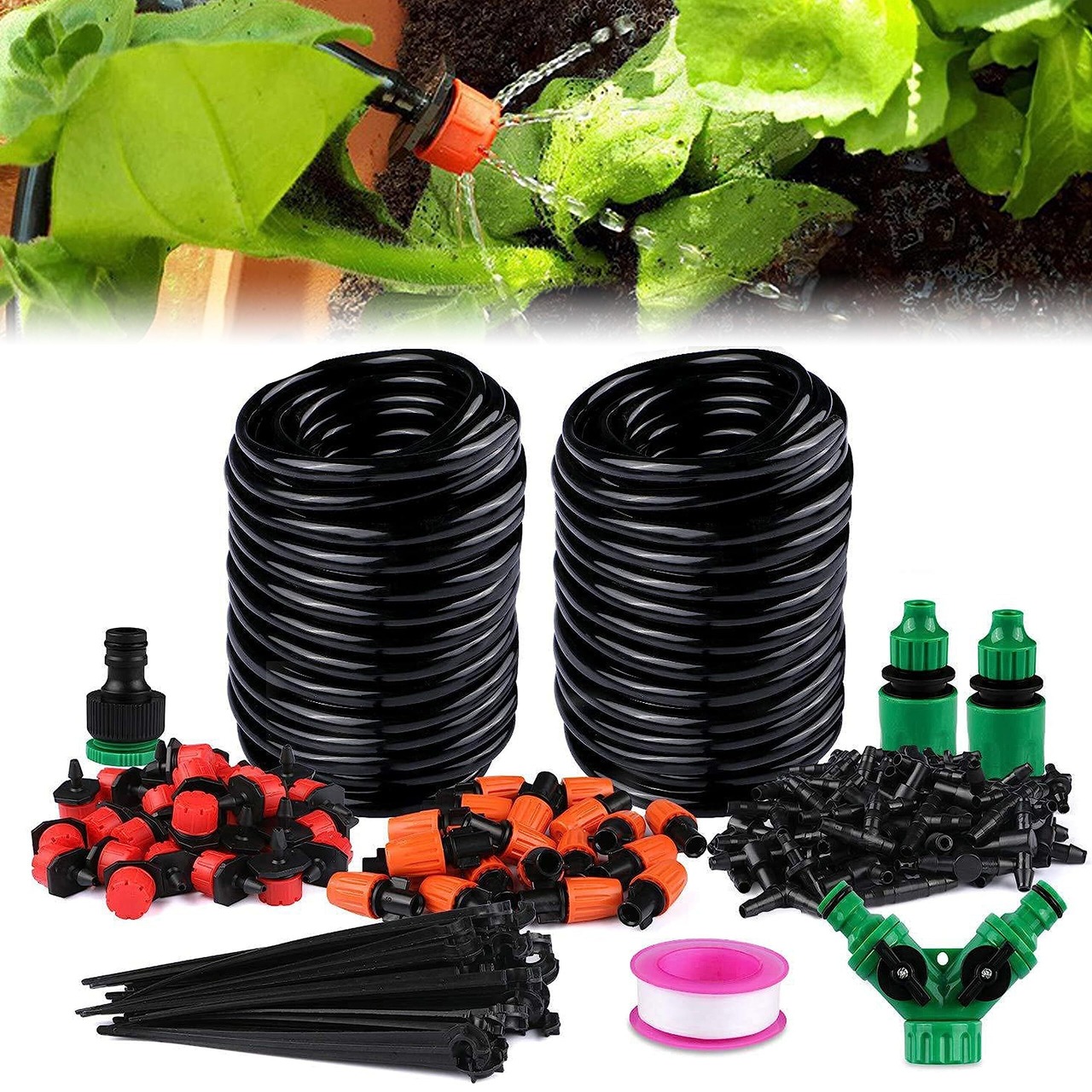 【広い適用】:灌漑システムセットは霧化、芝生灌漑、テラス、花園、野菜灌漑、屋上冷却、灌漑、農業、野菜、温室、花壇、プール霧冷却灌漑などに適しています。