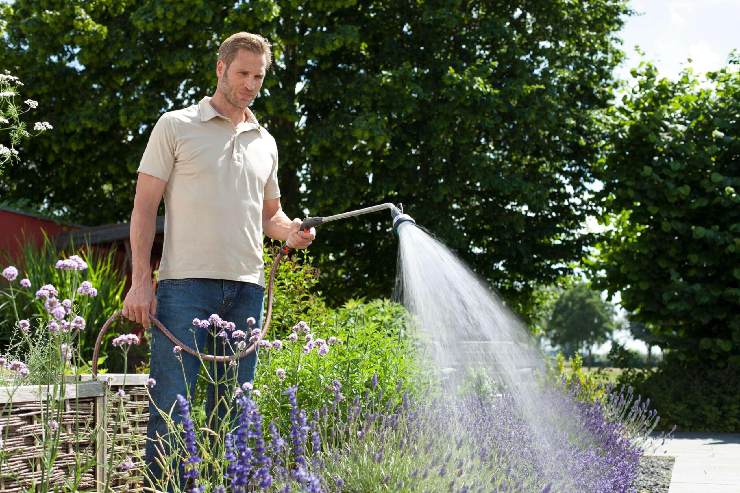 花壇や植物への散水でアームが短すぎて届かない時に役立つ、スプレーランス散水器。首振りの散水器ヘッドが備わっており、体をよじったり補助器具を使用せずとも、 低木やフラワーボックスの植物に楽に散水できる。3種類のジェットタイプが搭載されており、調整が簡単。