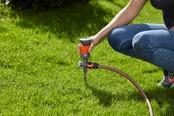 コンフォートサークルスプリンクラーVario ~ サークルスプリンクラーにより水を均等に供給。コンフォートサークルスプリンクラーVarioにより庭に均一に散水(最大面積225 平方メートル)、散水範囲は最大8.5メートル。専用のスプリンクラー回転タービンにより均等な水の供給を。噴射の方向角度は、90~360度まで段階的に45度単位で個別に調整可能で、庭のニーズに完全に対応。安定性の高い金属製のスパイクにより芝生の上に円形スプリンクラーをしっかり固定。取り外し可能な極細メッシュフィルターを使用しており、スプリンクラーの洗浄が非常に容易。拡張可能で広い面積に散水可能。広い面積に正確に散水するため、複数のコンフォートサークルスプリンクラーの直列接続も可能。