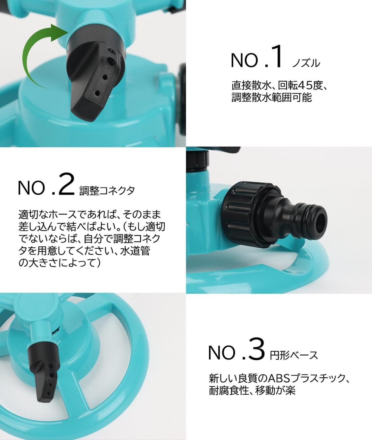 スプリンクラー 散水 回転式スプリンクラー 芝生スプリンクラー ノズル 角度調整 ウォータースプリンクラー ガーデン 広範囲 360度回転 自動散水 芝生 畑 散水 花壇 庭 花 灌漑 野菜用