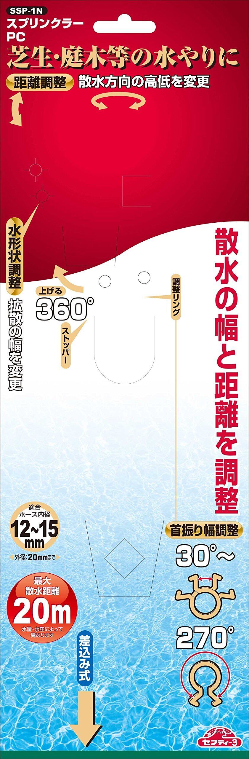 【限定セール】セフティー3(Safety-3) スプリンクラー PC 広範囲 回転タイプ 散水目安20m SSP-1N