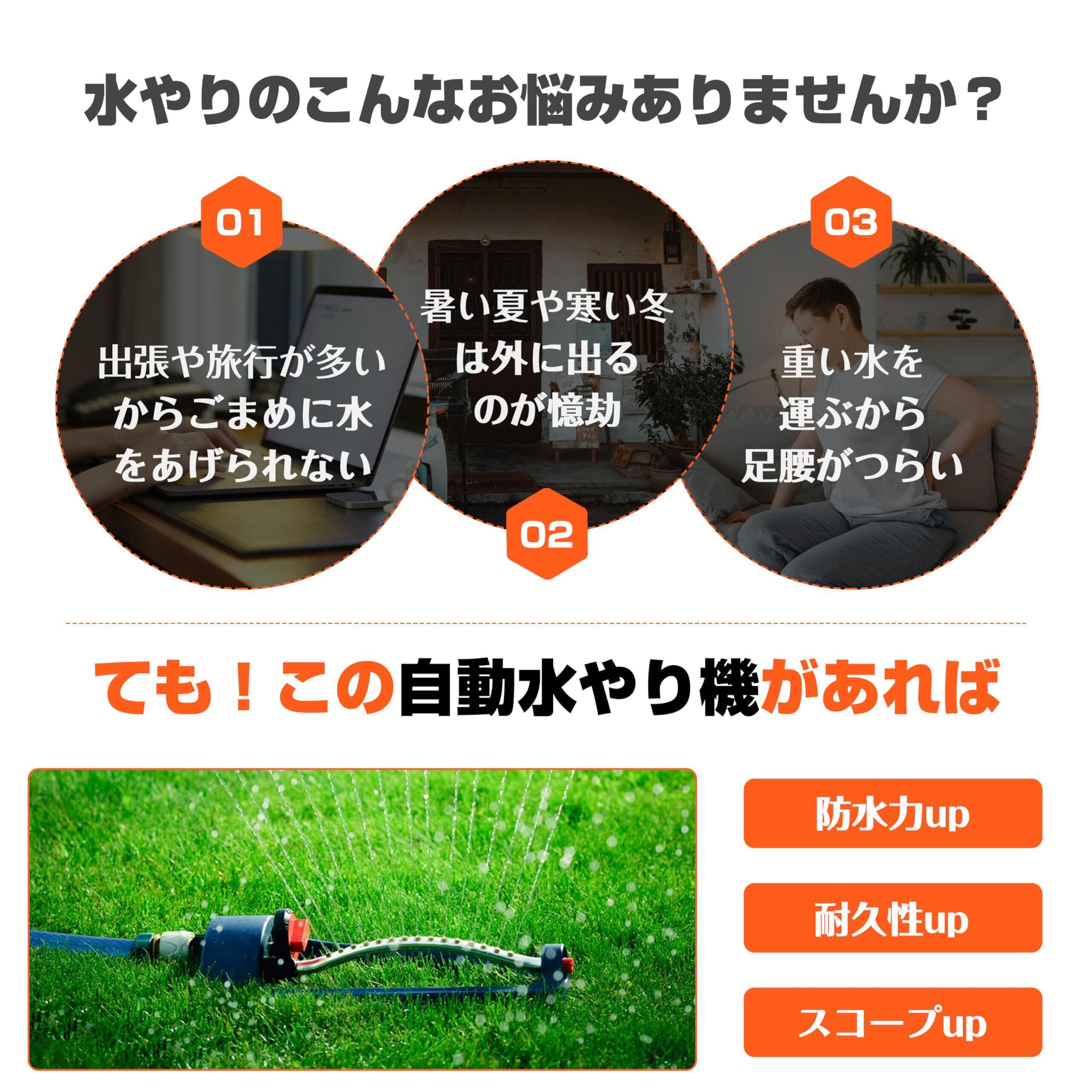【時間の節約】庭用芝生スプリンクラーはホースに直接接続できるので、芝生に簡単に固定できるので、自動散水、操作が簡単、灌漑に便利です。