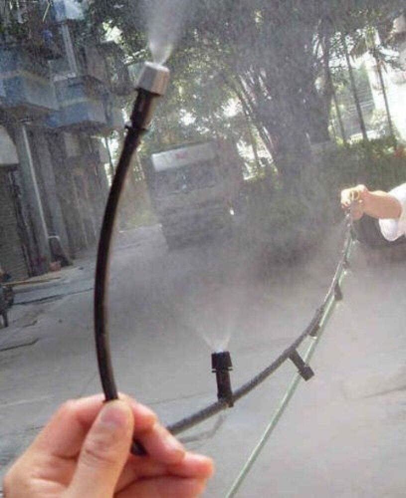 2) さらにエコで涼しい霧ミストとしてもご利用できます。水道の水圧でミストを作り、手軽に散水できるミストスプレーノズルにより、あっと言う間に見た目も涼しい空間が出来上がります。_ _