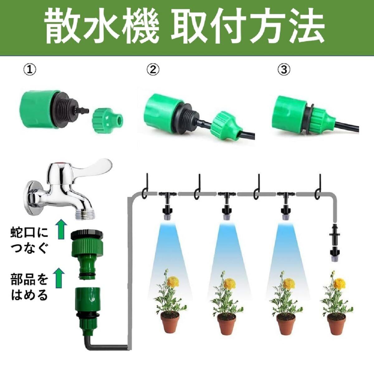 1 DIYタイプの商品です。手軽に散水できるミストノズルスプレーです。庭やバルコニーの水まき用に設置すれば水道の蛇口をひねるだけで簡単に散水できます。商品を自分の好みに合わせて自由に組み上げて下さい。_ _