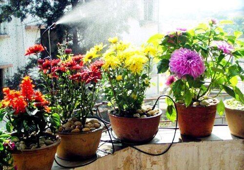 3)お好みにより、軒につけて霧ミストシャワーとして、または、床に置いてのガーデンシャワーの2通りの使い方ができます。_ _