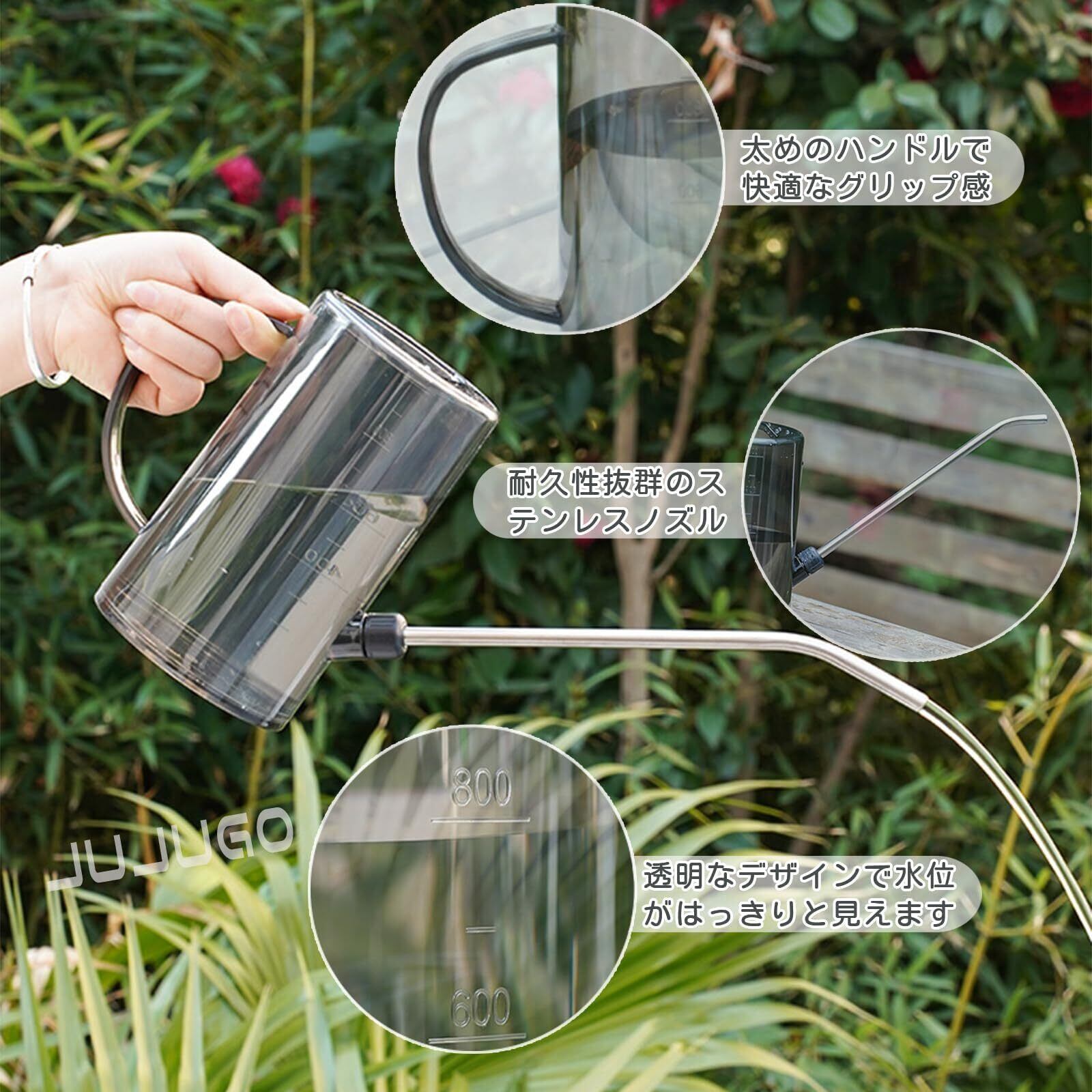 【正確な肥料管理に!目盛り付き1L容量】水量が一目で把握できるメモリ付き。液肥の希釈比率を誤りなく調整でき、植物の健康管理をサポート。