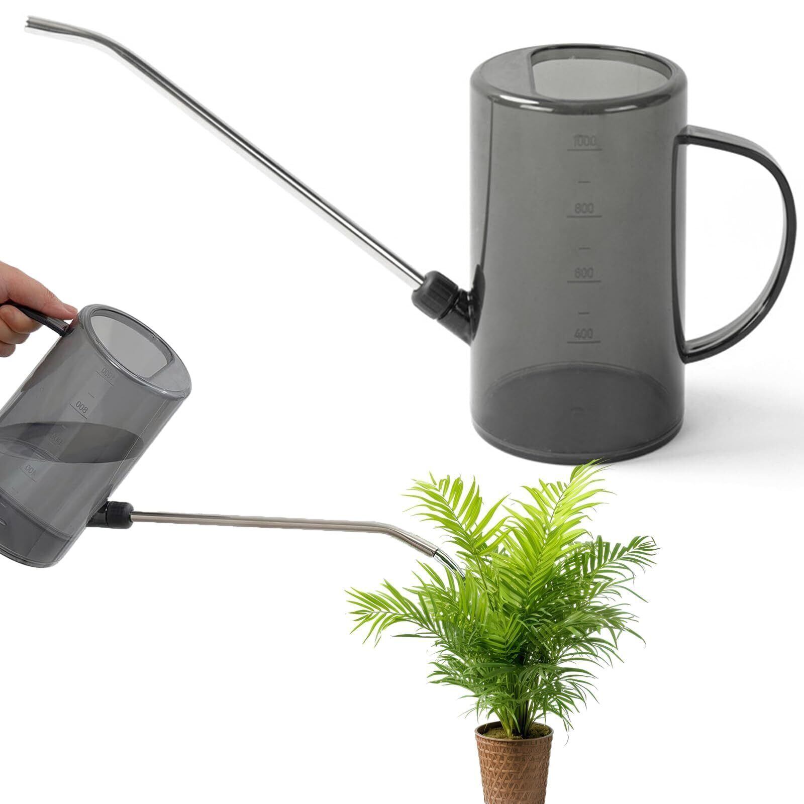 じょうろ 水差し ステンレスノズル じょうろ 1L 軽量 プラスチック製 水やり 散水 室内 ベランダ菜園 肥料希釈 ガーデニング 観葉植物(グレー)