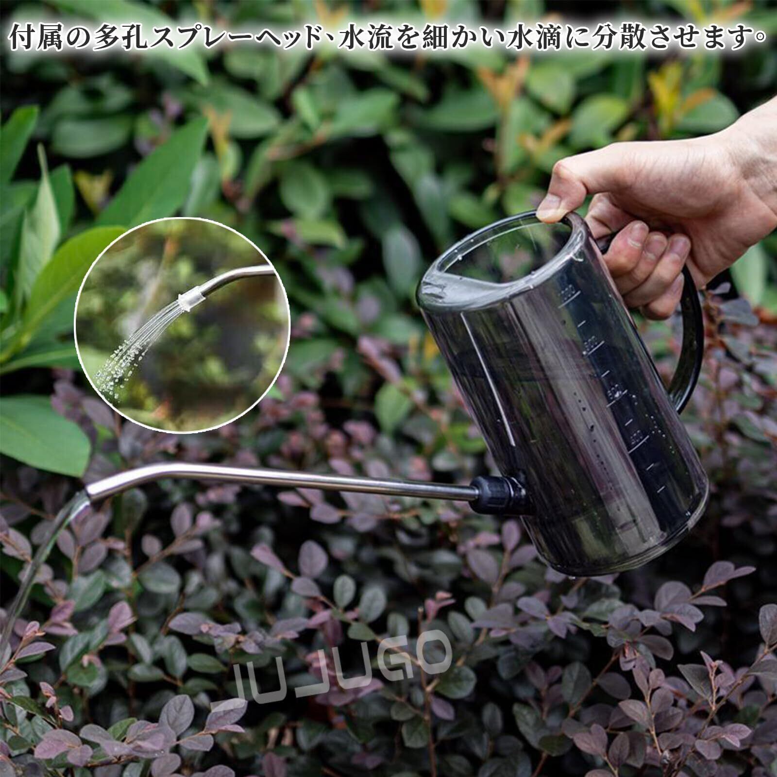 【数量限定】じょうろ 水差し ステンレスノズル じょうろ 1L 軽量 プラスチック製 水やり 散水 室内 ベランダ菜園 肥料希釈 ガーデニング 観葉植物(グレー)