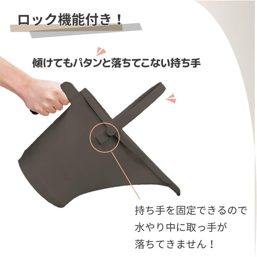 ■【特徴】・底面は希釈用メモリ付き!注ぎ口には1~5Lのメモリ付き! ・植物の根本にも水をやりやすい細い注ぎ口。 ・ロック機能により、傾けても持ち手が固定されてパタンと落ちることを防止します!