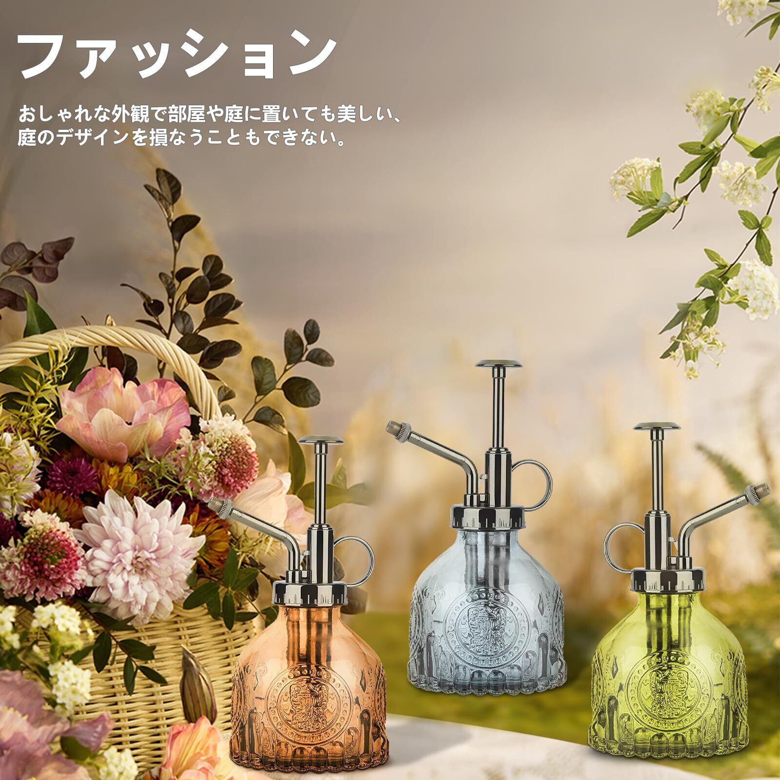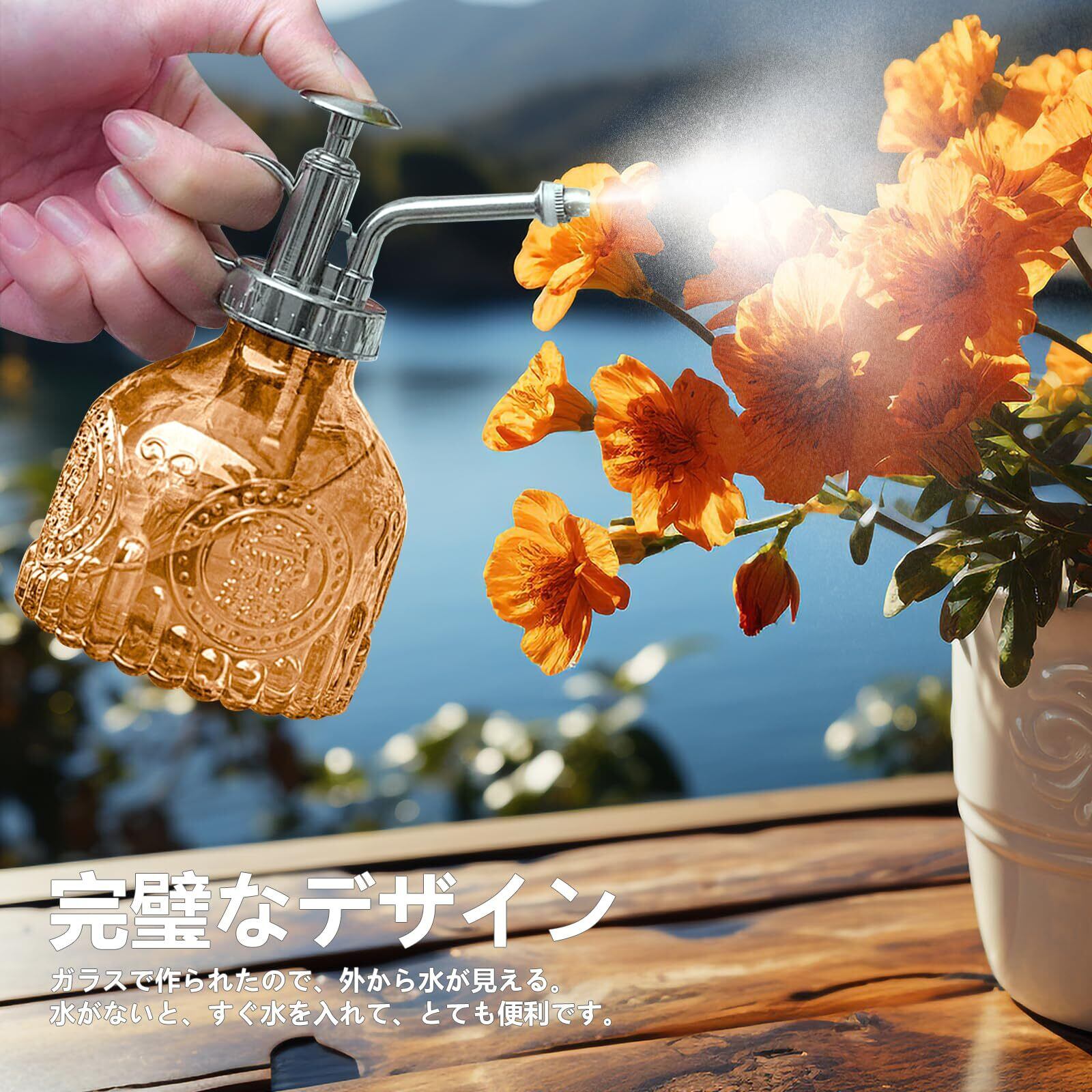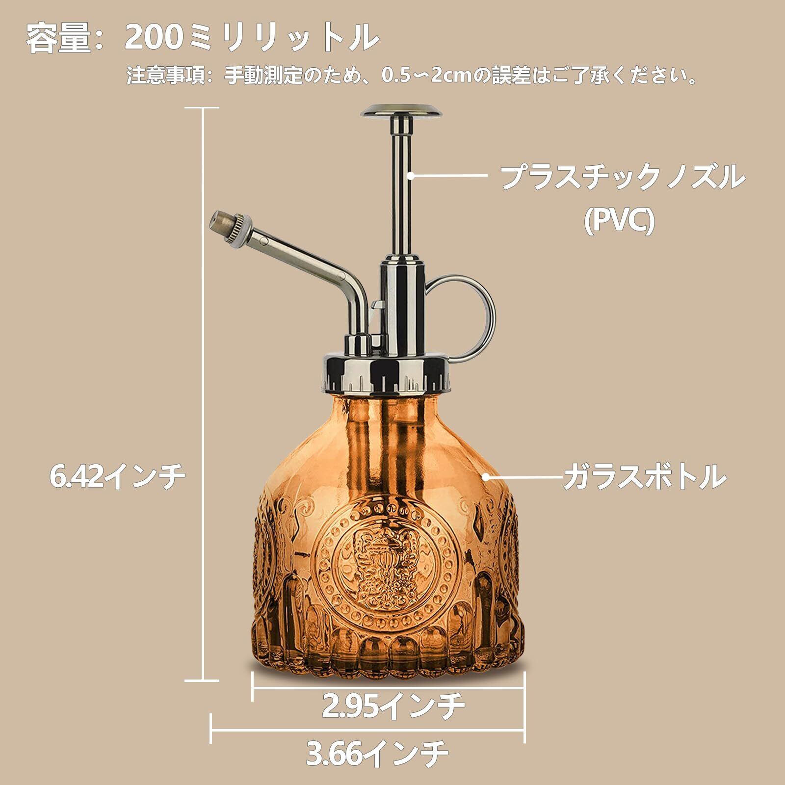 霧吹き じょうろ ガラス 植物 園芸 アンティーク調 インテリア アウトドア おしゃれ 観葉植物 掃除 スプレー 水差し 散水 安定した散水が行える ガーデニング 水やり 花壇 フラワー 栽培 オフィス 小さい 200ml ライト・ブラウン + ブロンズ ノズル