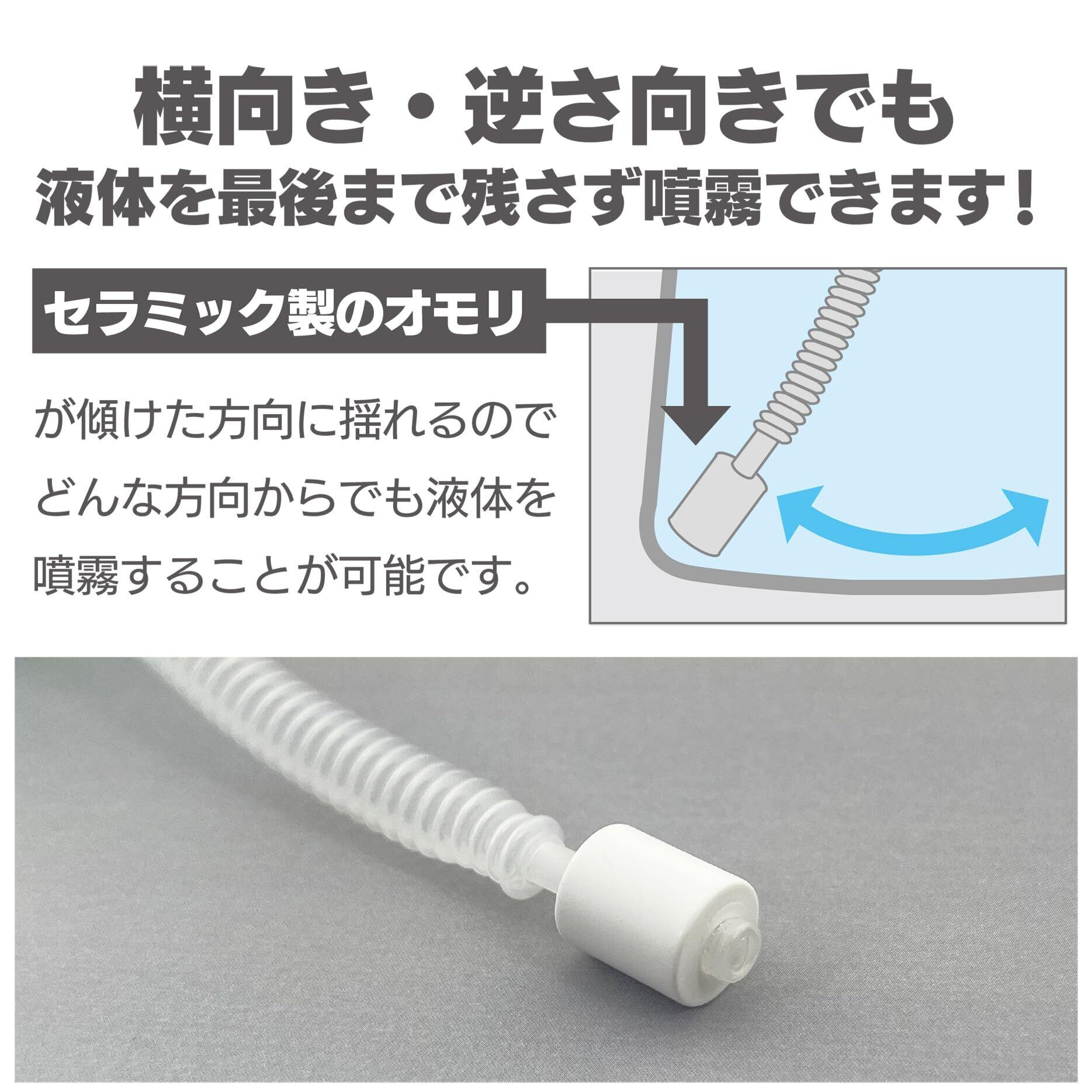 上向きでも横向きでも逆さ向きでもしっかりスプレーできます。