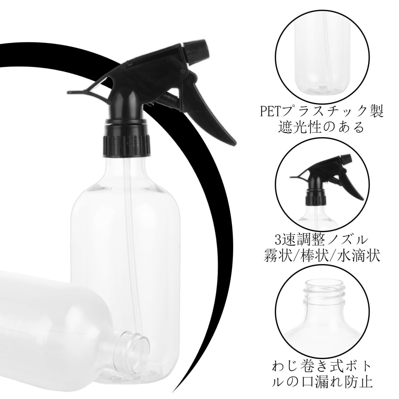 商品仕樣:スプレーボトル 10個セット、容量:500ML 、サイズ:22x6.8cm、カラー:透明、耐熱:-30〜50℃、スプレーボトルの持ち手は人間工学で設計されて、快適な使用感を感じられます。霧状と棒状と水滴状の使い方が3つあります。