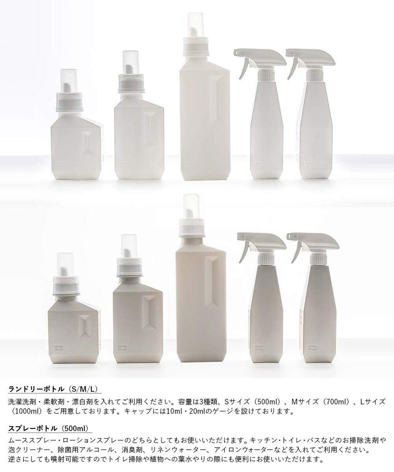 キッチン・トイレなどのお掃除洗剤や泡クリーナー、殺菌用アルコール、消臭剤、リネンウォーター、アイロンウォーターなどを入れてご利用ください。