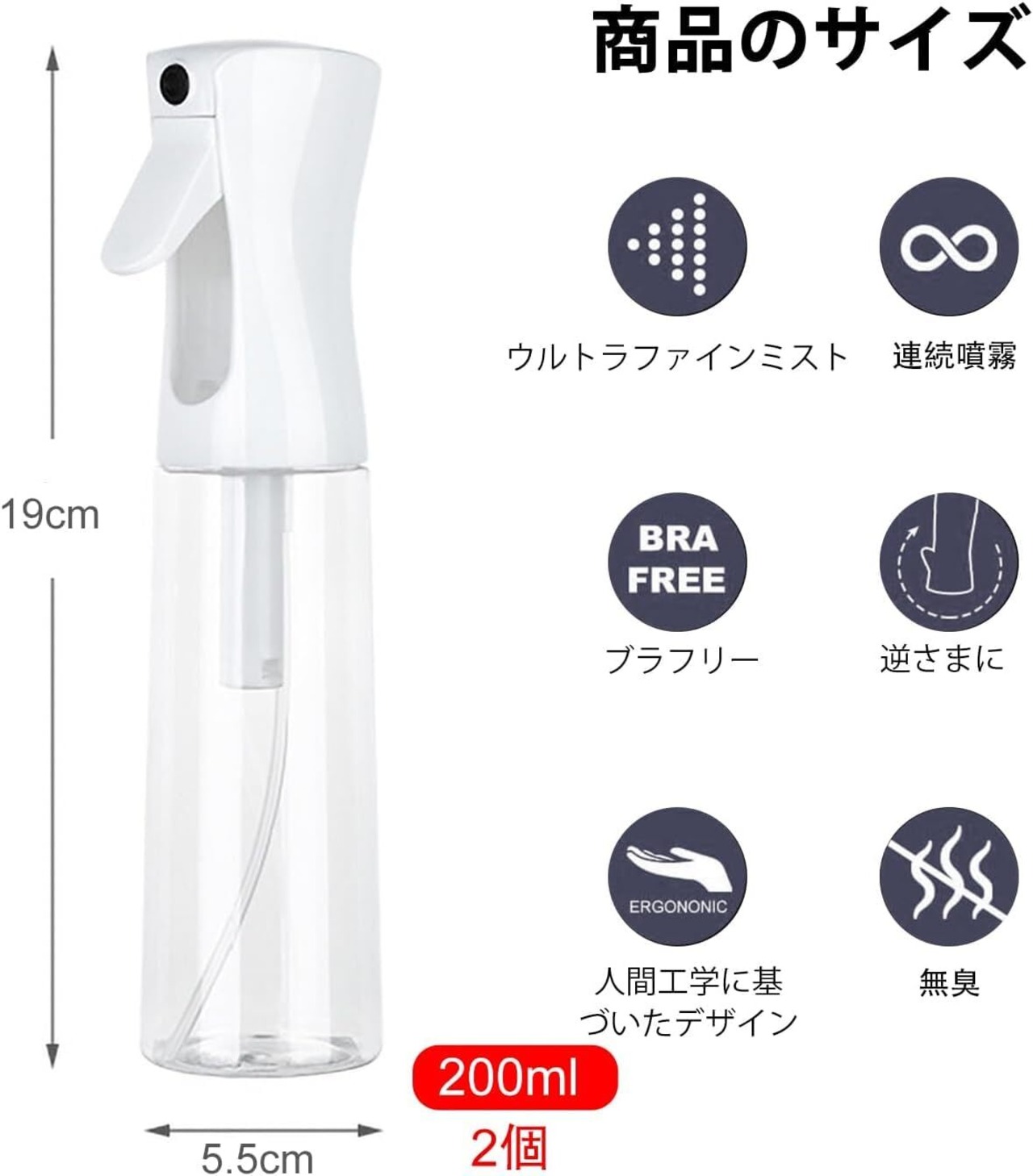 スプレーボトル 霧吹き200ml 2個セット 連続噴射 極細噴霧 漏れ防止 アルコール対応 観葉植物用 園芸用 除菌消毒用 アイロン 清掃用 美容室用 家用 ペット用