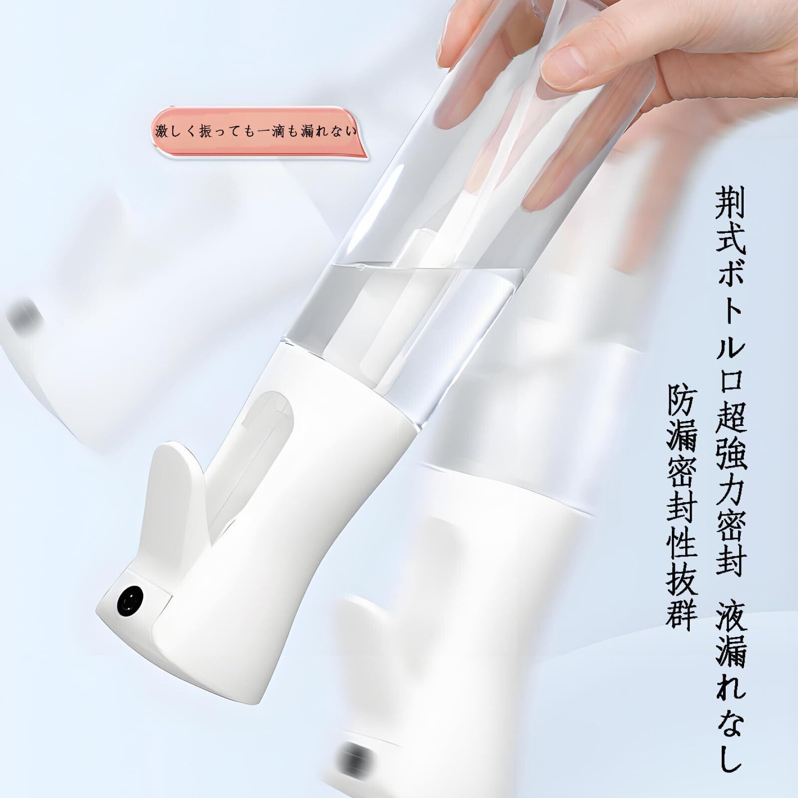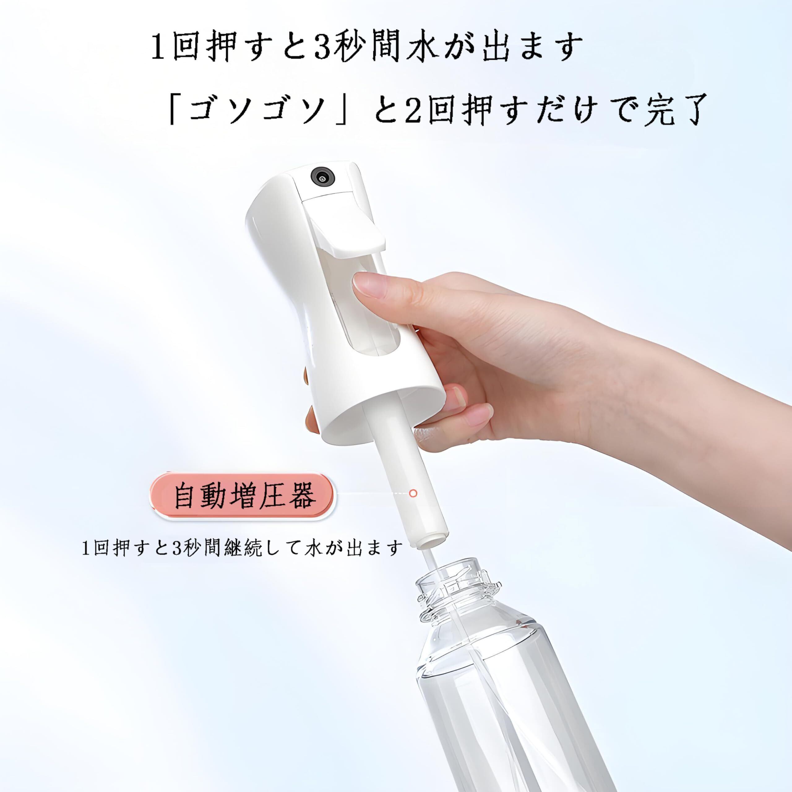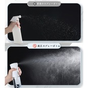【超微粒子ミスト 】:0.3mm の精密ノズルと高圧スプレーヘッドを搭載,細かく均一なミストを噴射。1 回のレバー操作で 2~3 秒間連続噴射し,手の負担を大幅に軽減。※粘度の高い液体(とろみのある化粧水など)はミスト状に噴射しにくいためご注意ください。