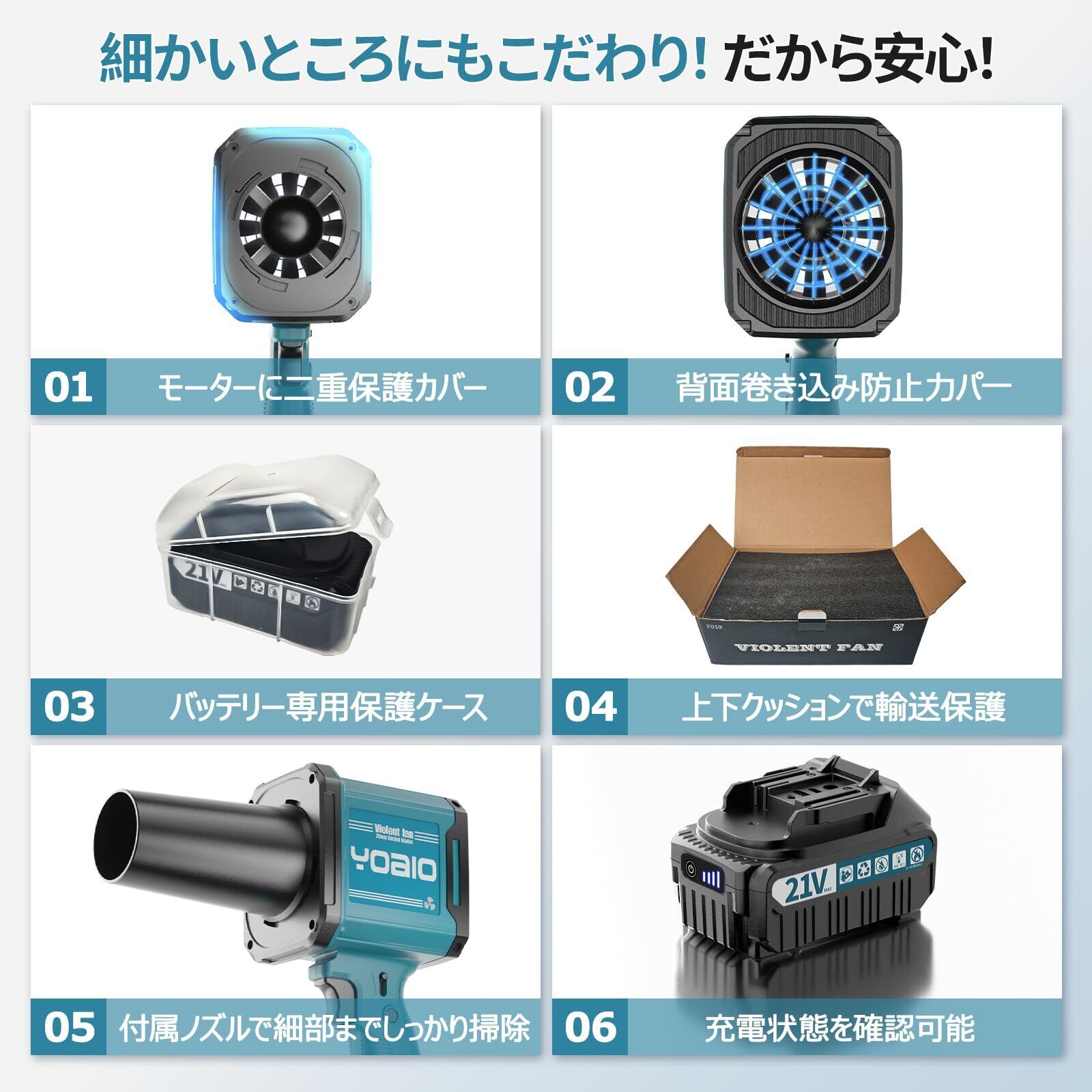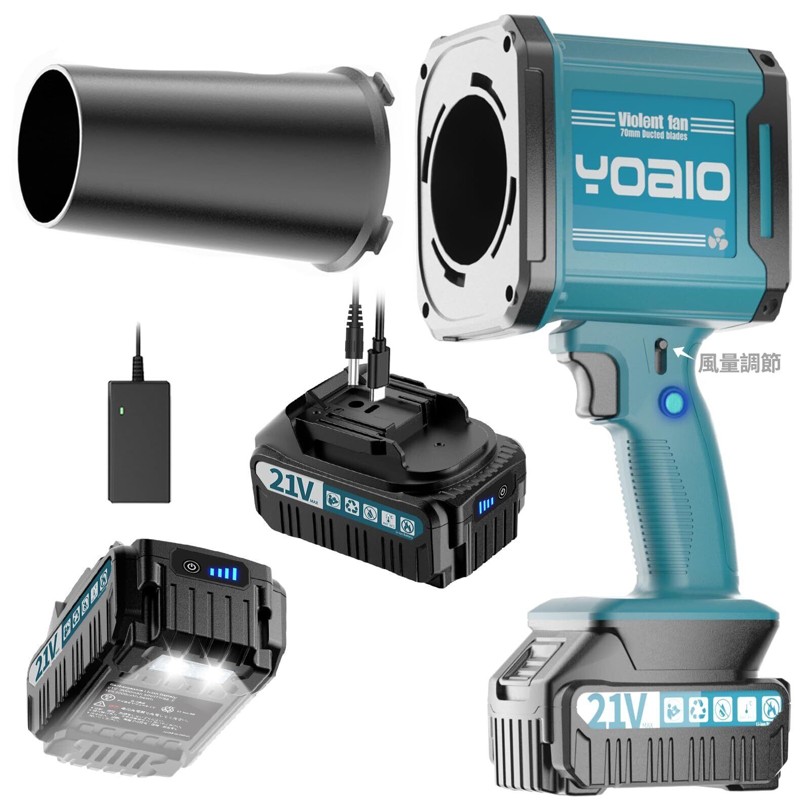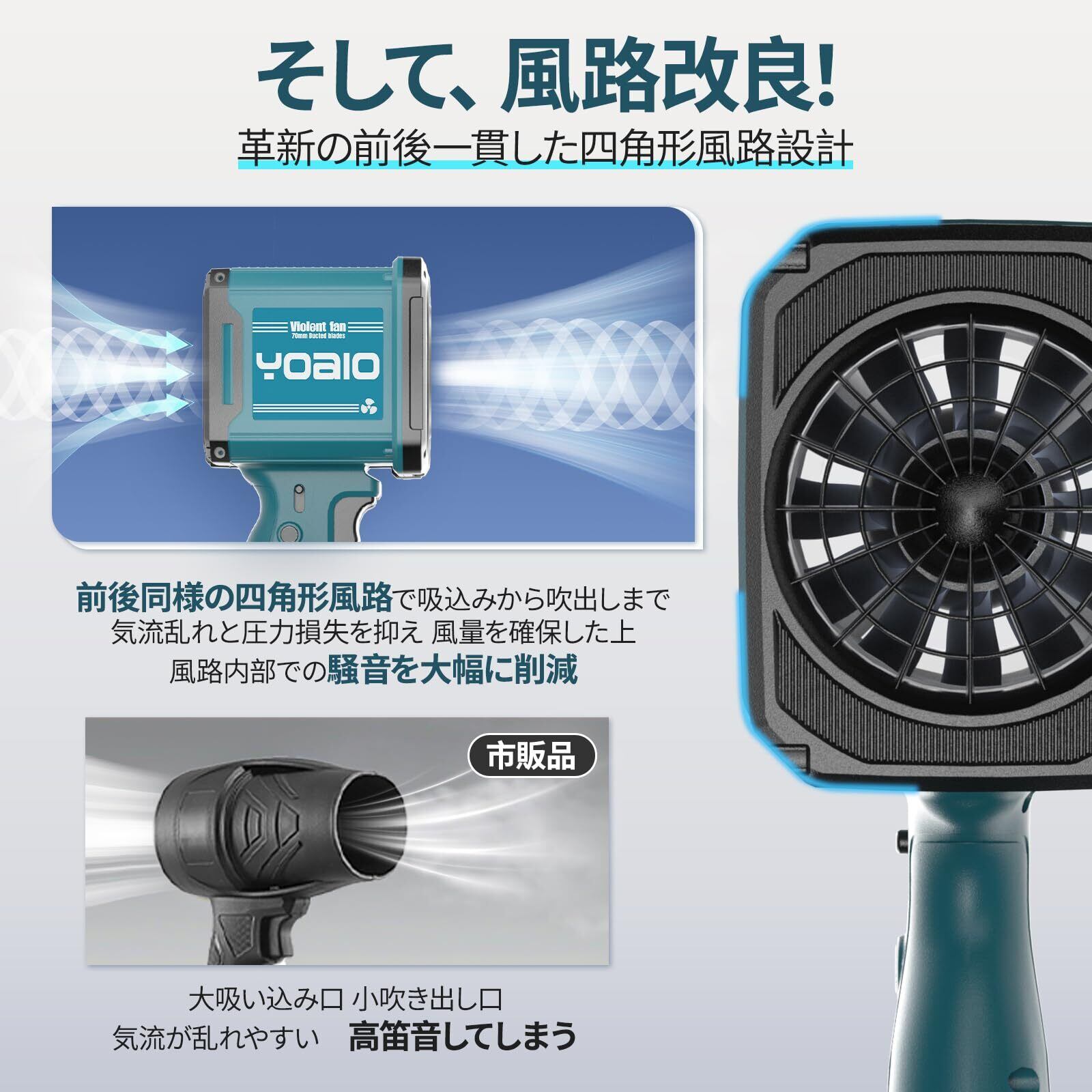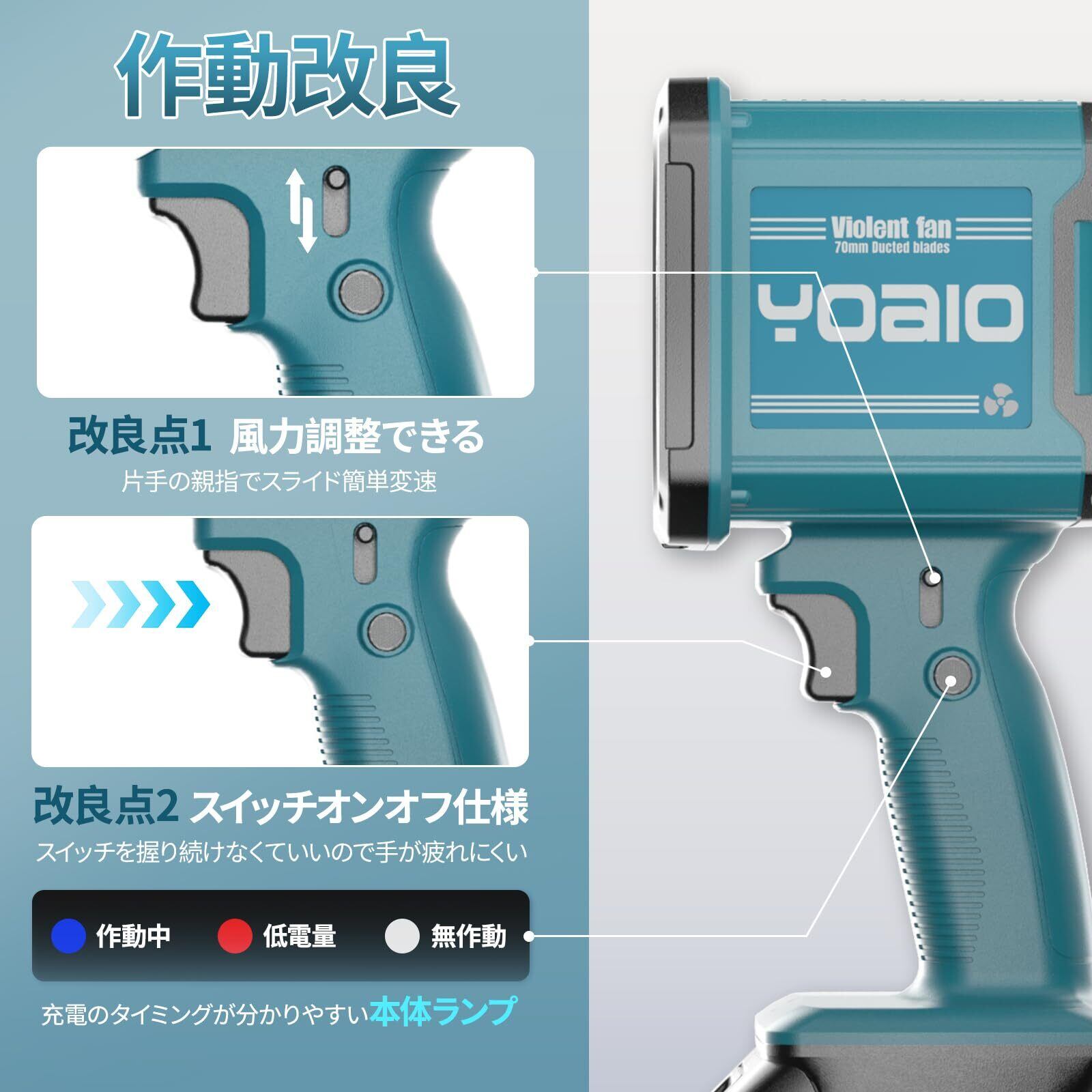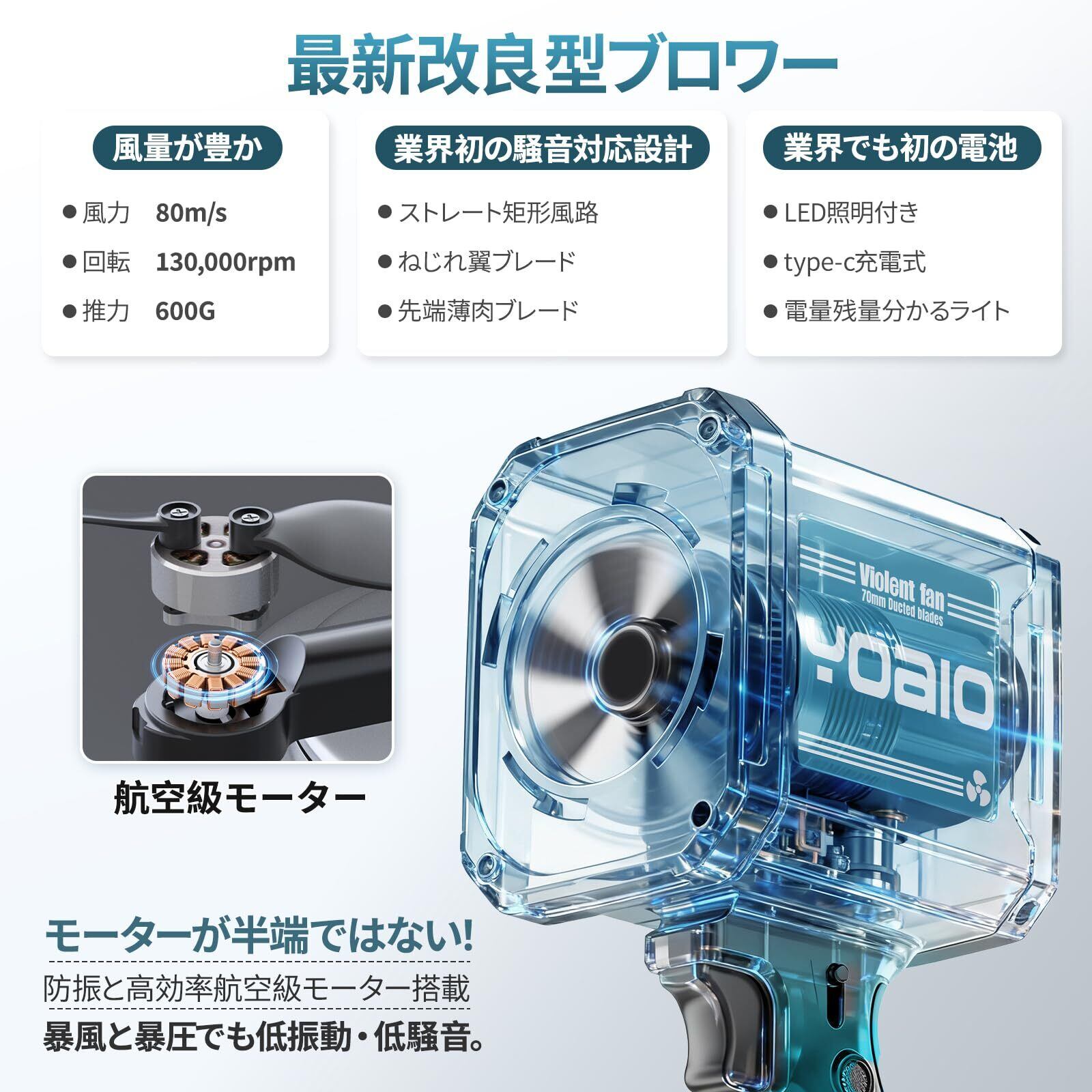 Yoaio第3代目改良強化版 ブロワー 洗車 強力 ブロアー 【75db超低騒音・航空級モーター・AI節電・ハンギングライト付き】電動 エアダスター【風速ロック・風量調整可・ノズル付き・Type-C充電可】充電式 エアーブロアー 【80m/s圧倒風速・600g超強推力】3000mAhバッテリ一2個 マキタ互換 軽量小型ブロワー コードレス 車掃除/落ち葉/ハンギング/キャンプ/登山 プレゼント