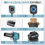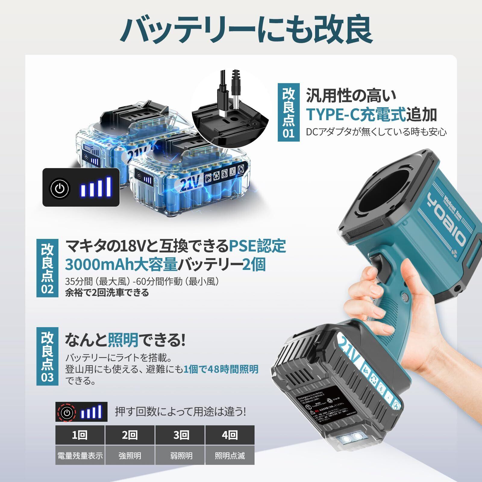 【多機能バッテリー】【マキタ互換|ハイキングランプ付き】大容量バッテリー(3000mAh×2個)をブロアーと同梱、最大90分間連続使用可能。日本の電気用品安全法に基づくPSE認証を取得し、過電流・過熱・過負荷・短絡・過放電の5重保護機能で安全性を強化!衝撃に強い専用収納ケースが付属しているので、保管や持ち運びにも便利。PSE認証済みのバッテリー残量表示は使用時の姿勢に向けていて、すぐ残量確認が確認でき、途中での電源切れの心配は無用。本体からの作動ランプでもすぐに充電のタイミングが分かります。マキタ18Vバッテリーと互換性があり、BL1830 BL1840 BL1850 BL1860 BLなどが適用され、お手持ちのマキタバッテリーもそのまま使用可能。追加バッテリーを購入するコストを抑えつつ、キャンプ場や駐車場、掃除、アウトドア用品の洗浄など、電源がない場所でも快適にお使いいただけます。バッテリー底部はハイキングライトが付いてあり、電量ボタン押す回数によって電量段階表示、強照明、弱照明、点滅照明になります。アウトドア、洗車、キャンプの水飛ばしや夜の照明にも役に立ちます。独自開発のAI節電システムにより、従来製品より50%も長い使用時間を実現し、地震など災害時などの緊急時に2個合計で96時間の照明ができるため、長時間使用も安心!batteryにはタイプCとDC丸口の2種類の充電ポートを備え、スマホの充電線をそのまま使えることができ、コードが増えなくてよい。バッテリー1個はわずかの500g、単独のバッテリー持ち歩きも楽。