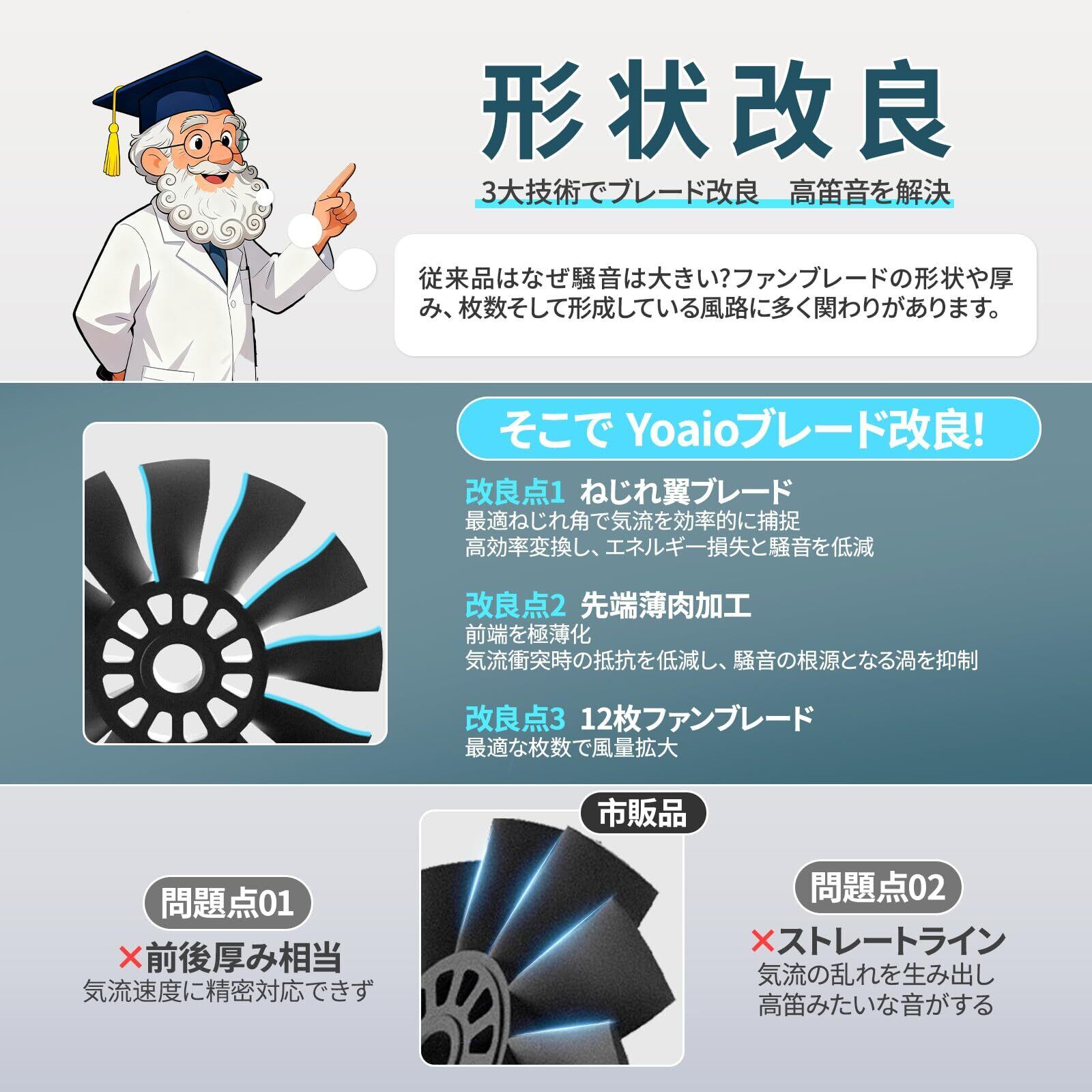 【78db超低騒音】【Yoaio独自のねじれ翼型|12枚ファンブレード厚みは違う】ご存じでしょうか?騒音はファンブレードの形状や厚み、そして枚数に多く関わりがあります。Yoaio 強力ブロワーは独自開発のファンブレードで難題だったこの騒音問題を解決!従来品のブロアーは構造が単純で加工しやすい翼型ブレードになっていて、風機の空力性能に直結する鍵要素の厚みも前後一緒なので、気流速度に精密対応できず、高笛みたいな音がするとよくクレームがありました。そこで、Yoaioは一年間以上の研究に渡り、ねじれ翼型採用するブロアーに辿り着きました。ねじれ翼型の洗車 ブロワーのブレードは前端の厚みを薄く加工することそしてファンブレードは直角ではなく、S型に改良すし、各部位の気流速度に精密対応し、風力変換効率向上とともに、抗風性能も強化され、気流の抵抗を大幅に低減し、騒音抑制ができました。従来品より30%音量軽減し、78db超低騒音に成り立つ。近所迷惑を気にせず、この強力 ブロワーは使い放題です!