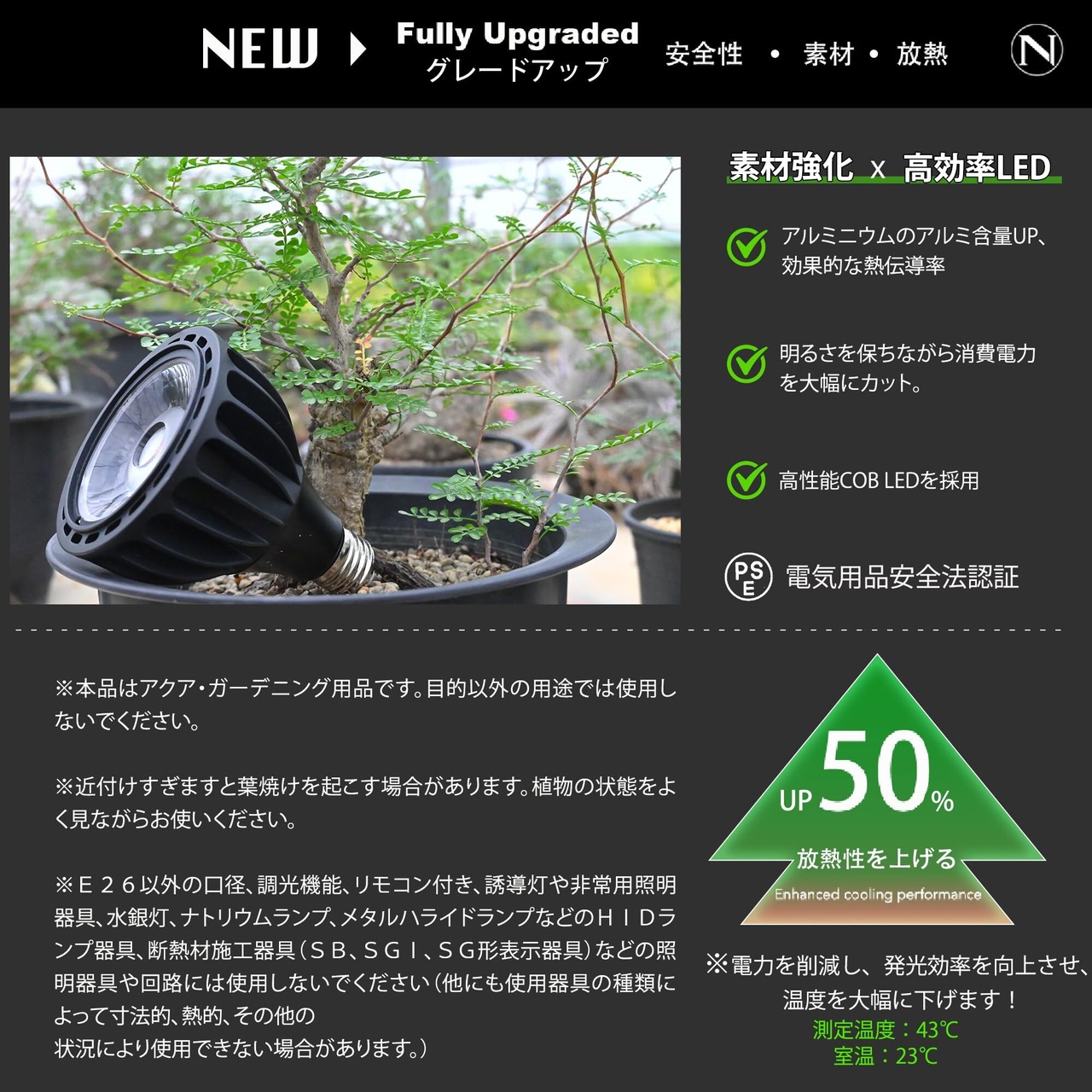 【2025最新】【公式】Niwuno(ニウノ)「2026年新型Updated」植物育成LEDライト Aurora Nova Max 白色系 高PPFD 高力率 高演色性 フルスペクトル 植物用LEDライト レンズ外し可能 長寿命 E26口金 集光レンズ(24°)付き広角レンズ(60°)付き(Aurora Nova Max,5800K,18W)