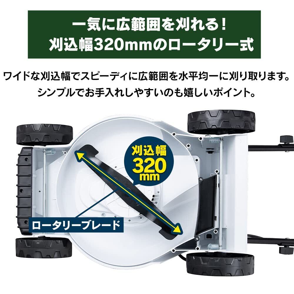 アイリスオーヤマ 芝刈機 電動 刈込幅320mm 刈込高さ3段階調整 ロータリー式 簡単操作でコンパクト G-320W ホワイト