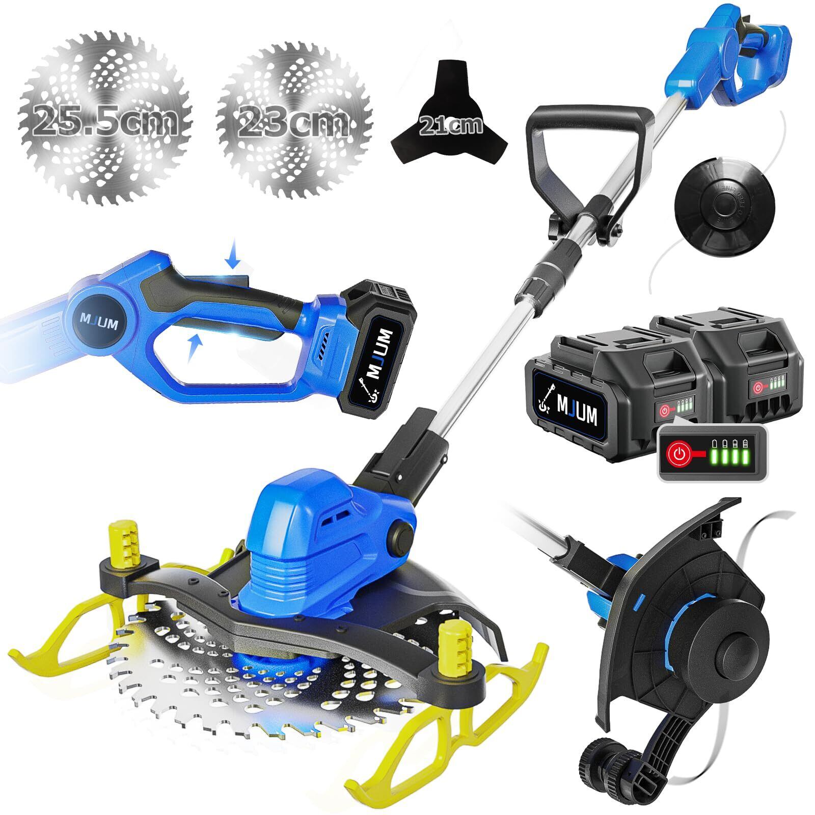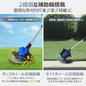 【特価セール】充電式草刈り機【2025年新登場・刈刃径255mm・高さ5段調節タンクホイール&サイド補助輪付き】1台4役 21V コードレス電動草刈機 電量表示 PSE認証4000mAhバッテリー2個 上下90度左右180度調整ヘッド 300mm保護カバー 替刃4種 丸鋸刃 三枚刃 ナイロンコード 内蔵4m替えコード 補助ハンドル 肩掛けバンド 低騒音 安全 女性簡単操作 草刈り 芝刈り 縁刈り 除草 園芸