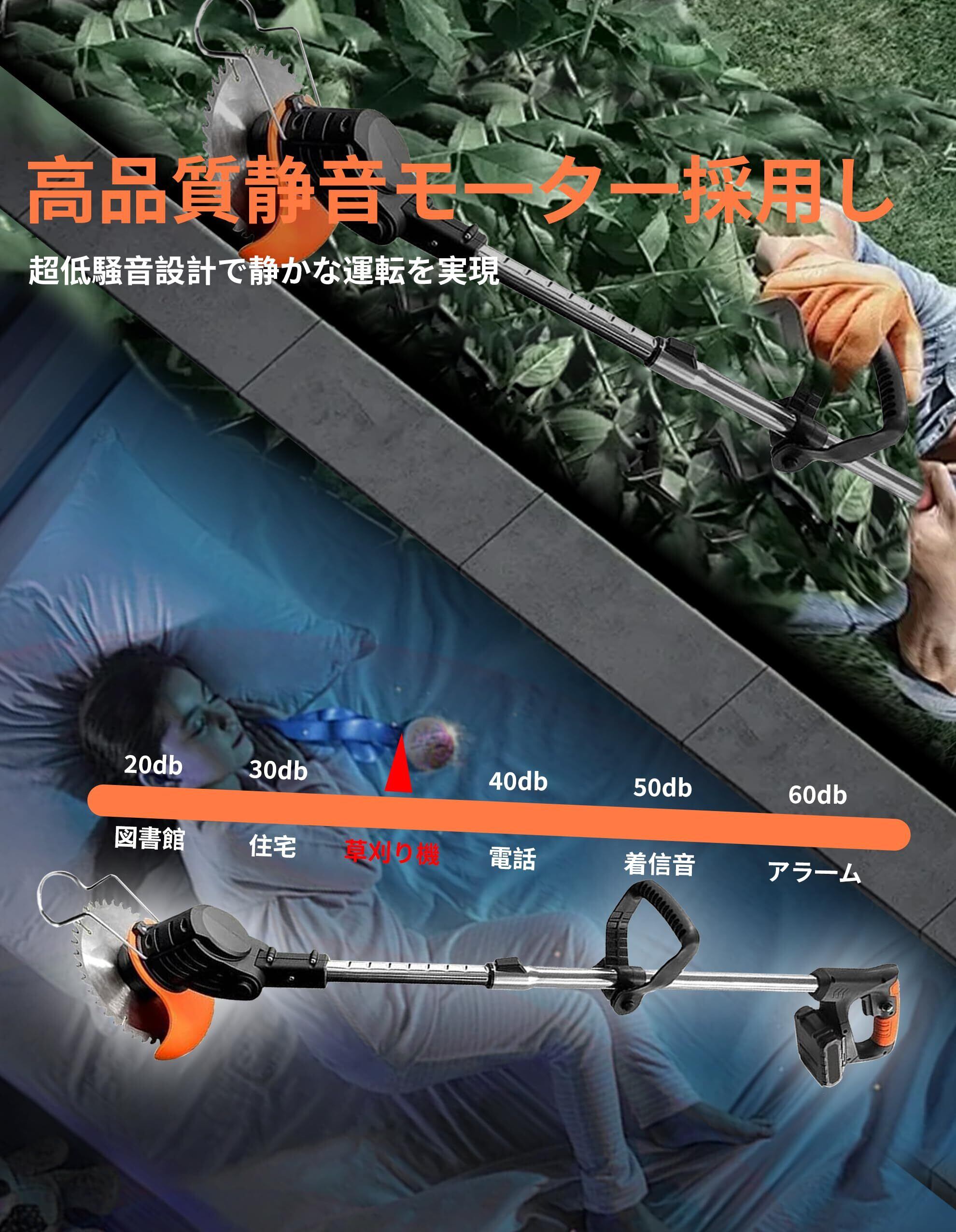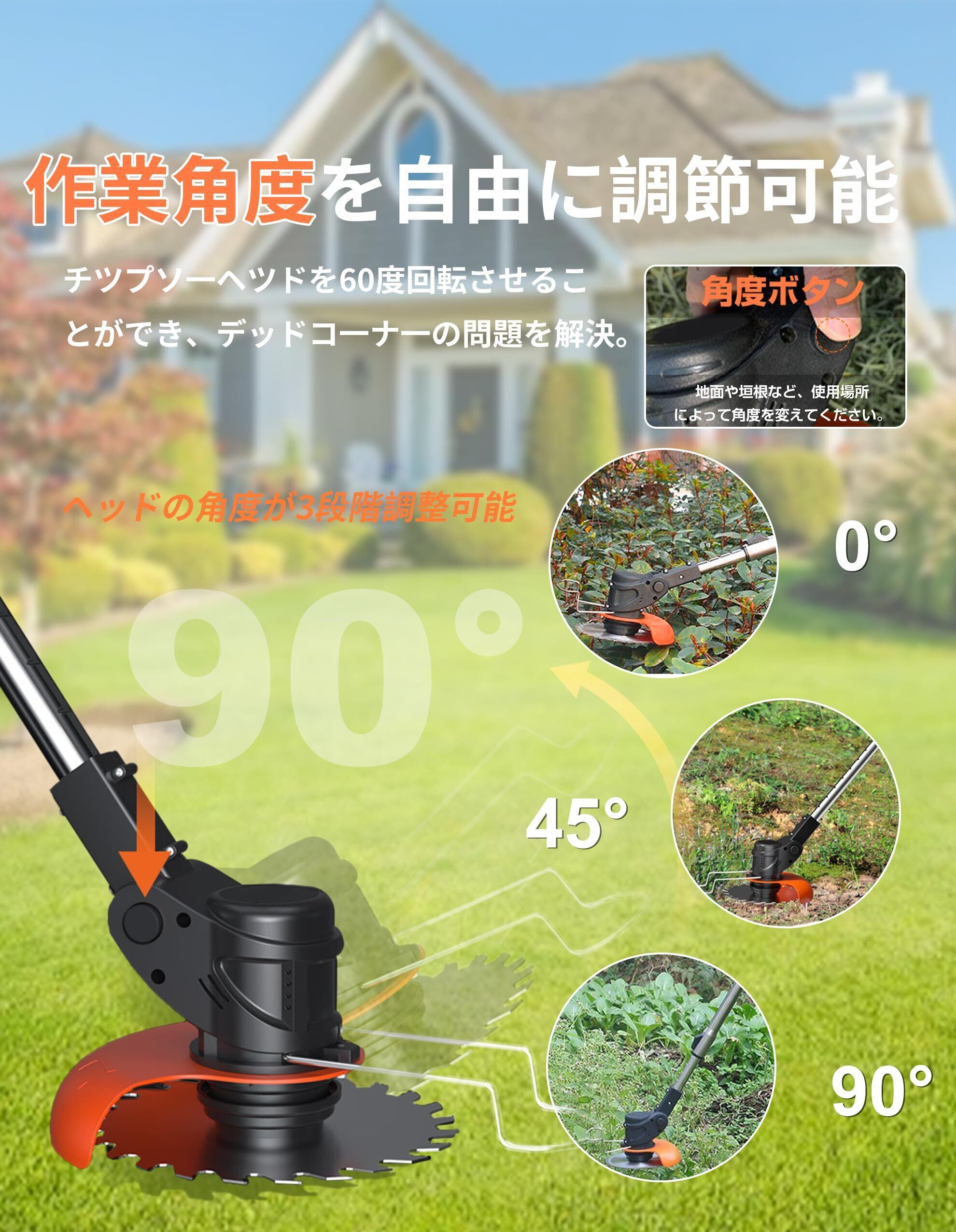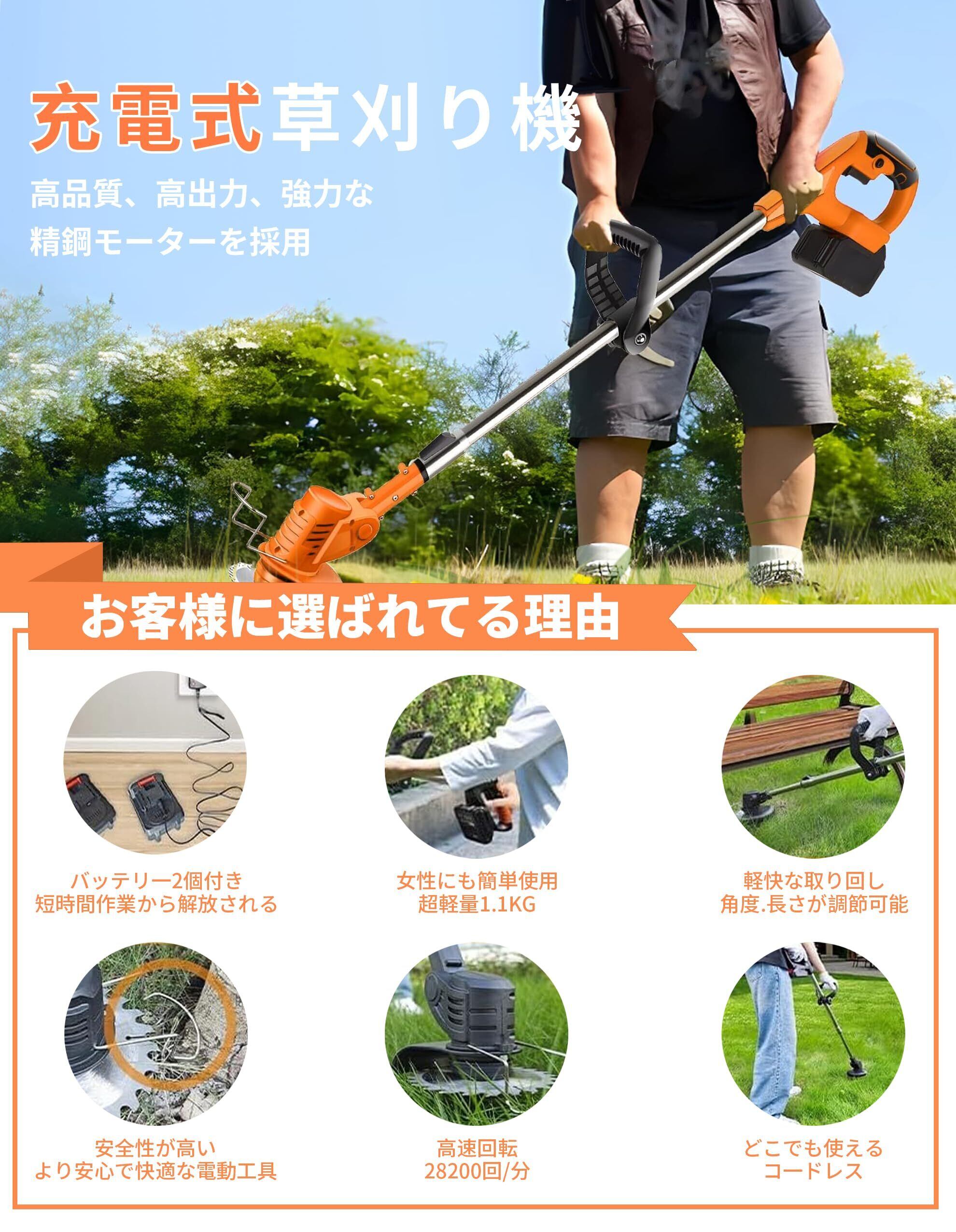【数量限定】【KAKA】質保一年間 2025新登場 草刈り機 充電式 コードレス 草刈機 大容量バッテリー2個付属 軽量 電動草刈り機 高効率チップ 多地形 伸縮 角度調整 4種類の替刃で芝生 枝切り 畑 雑草 植木対応 家庭用 日本語説明書付