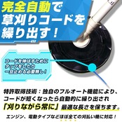 今までのカッターには無い新機能! ①完全自動でコードを繰り出し! ②ヘッドの分解不要!超カンタンなコード交換! ③独自開発ディスクでハイパワーな刈り心地! ※チップソーと違って安心・安全 ツイストコードによる静穏性の向上 ツイスト形状により切れ味抜群 地面スレスレを刈れる薄型設計。形状バランスが取れているため低振動 部品点数が少なく手間いらず。