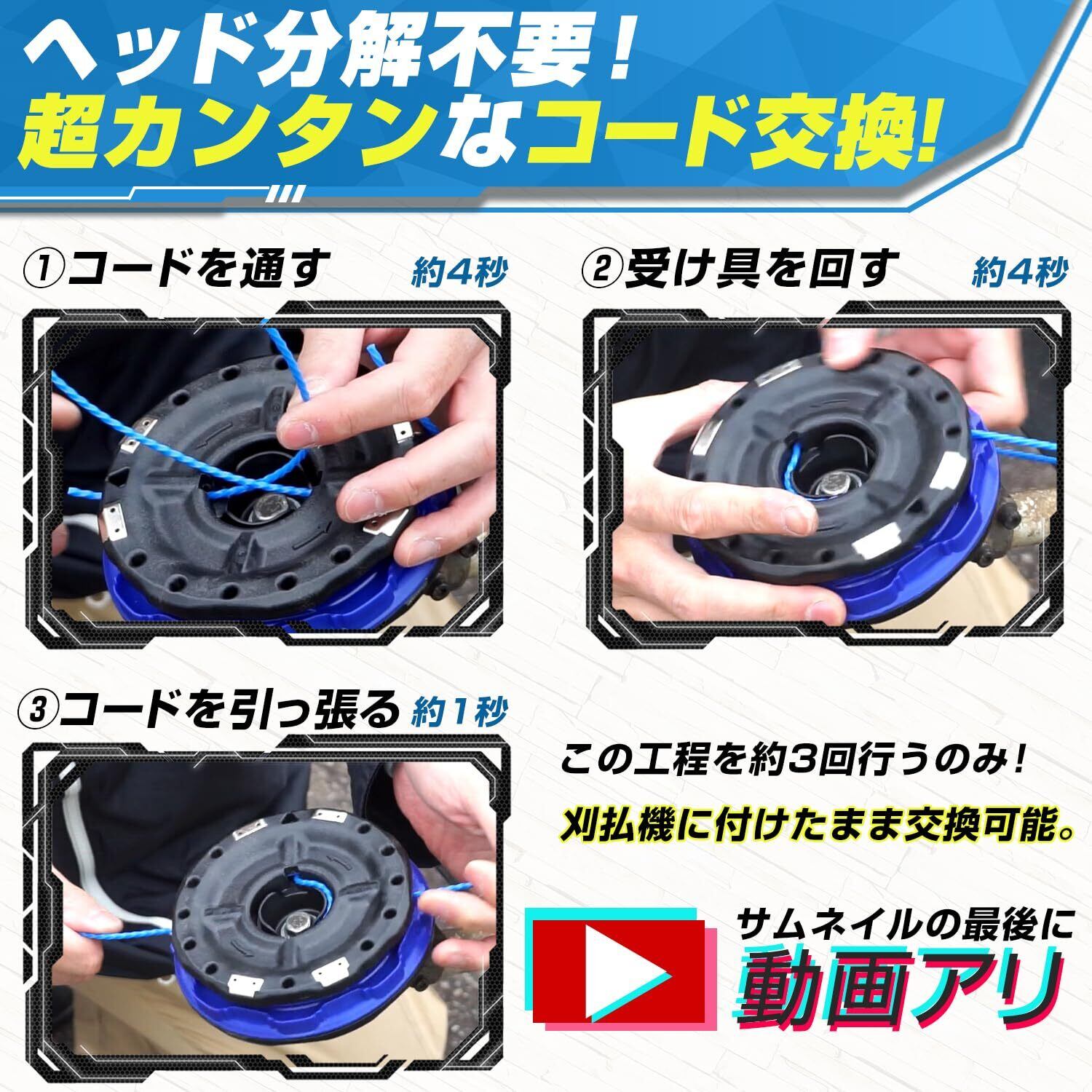 【ヘッドの分解不要!超カンタンなコード交換】 本製品は刈払機に付けた状態でコード交換が可能!手間いらず。 コードを入れて数回カチカチ回すだけ※実は…国内刈払い機の2大巨頭、マキタ・山善の ナイロンカッターヘッドはダイアトップが製造しています!