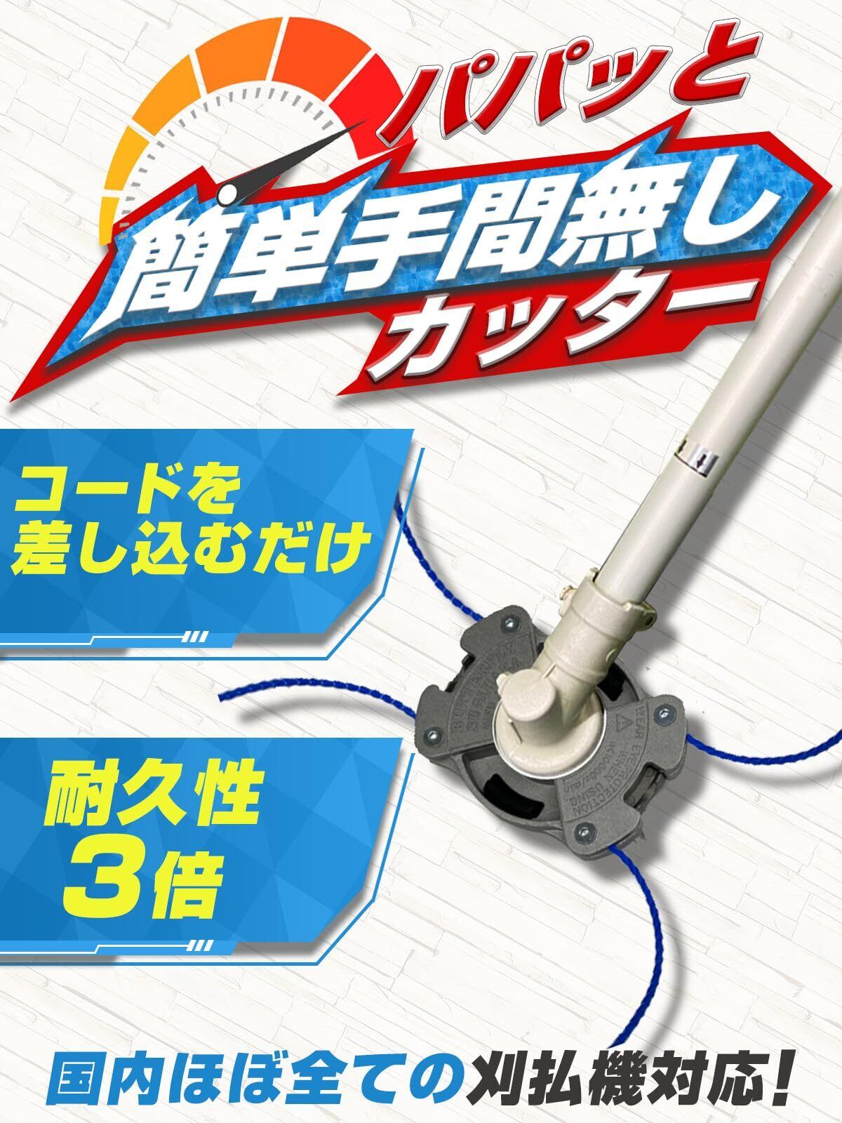 分解不要、本体から取り外し不要でナイロンコードを差し込むだけで草刈りができる「ぱぱっと簡単手間なしカッター」とにかく簡単!手軽に草刈り!がコンセプトのアイテムです。