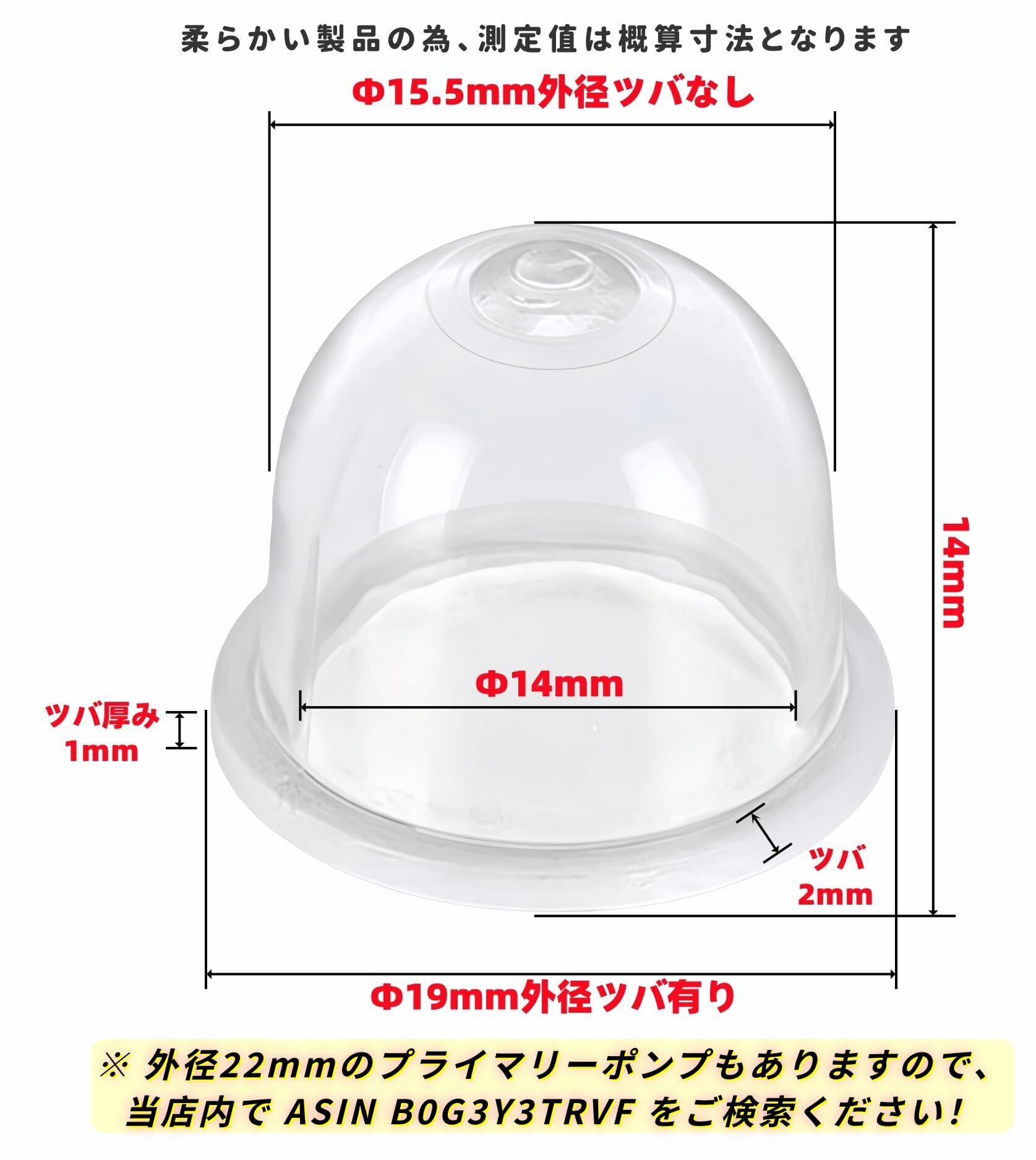 プライマリーポンプ 刈払機 草刈機 プライマリー ポンプ プライミングポンプ オイルカップ 外径15.5mm クリア キャブレター パーツ チェーンソー 修理用 互換品 (3)