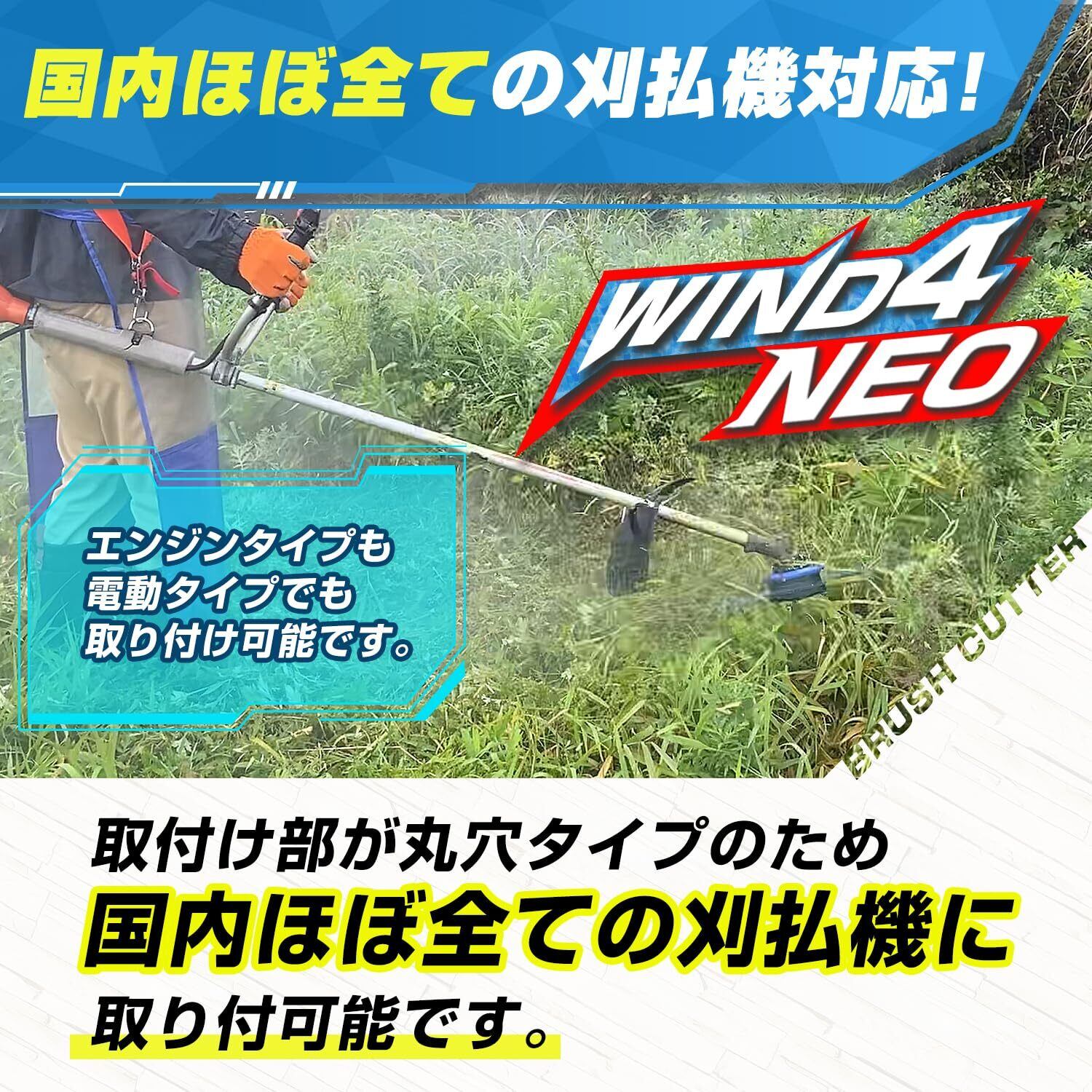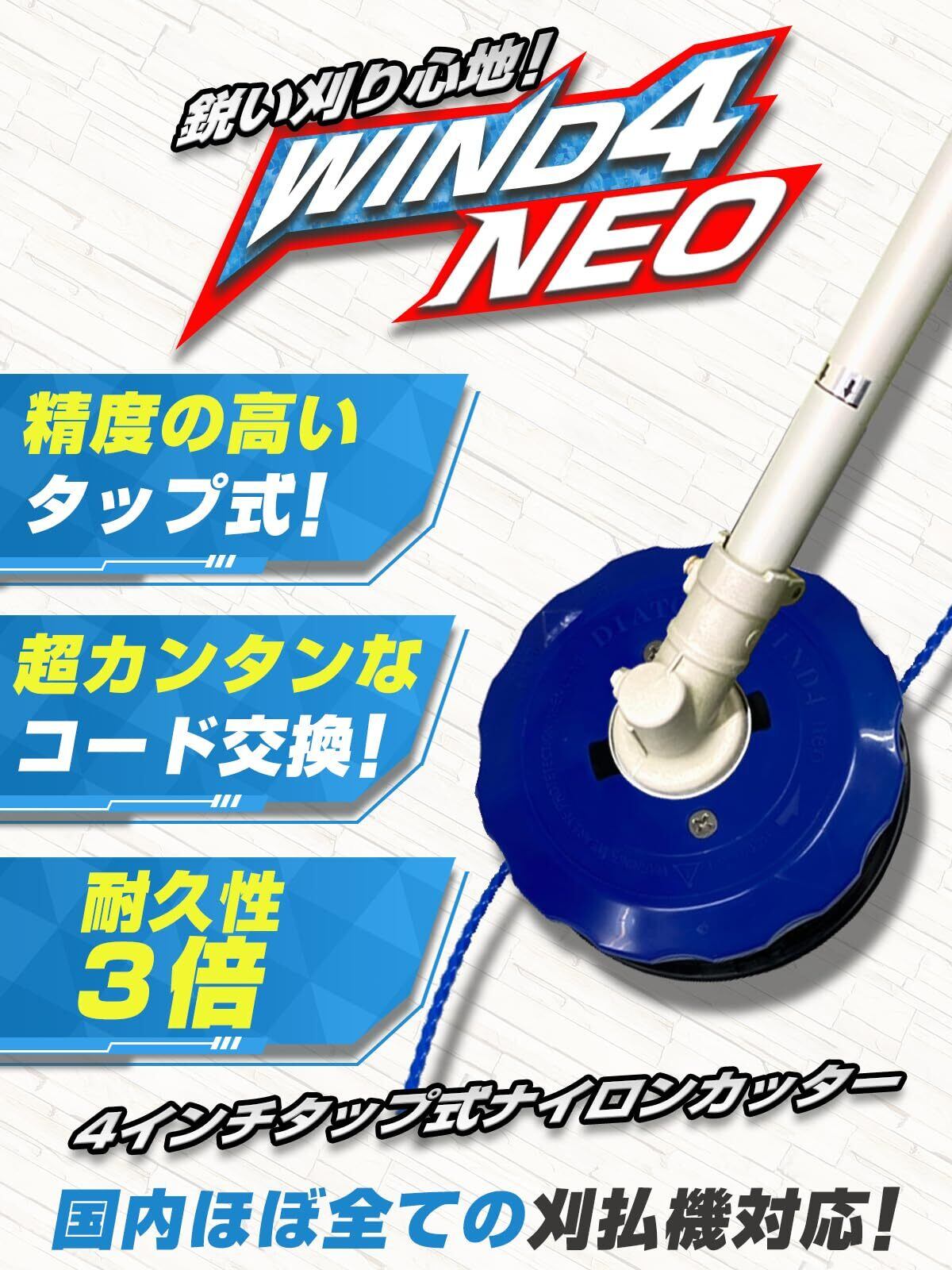 ナイロンコードカッター タップ式 WIND4Neo 4インチ (直径11cm) ダイアトップ ほぼ全ての国内エンジン式 電動 刈払い機対応 草刈り 替え刃 芝 壁際 低騒音 静音 ブレード 薄型 軽量 石 タイル ワイヤー 雑草 よもぎ せいたか草 ススキ 除草
