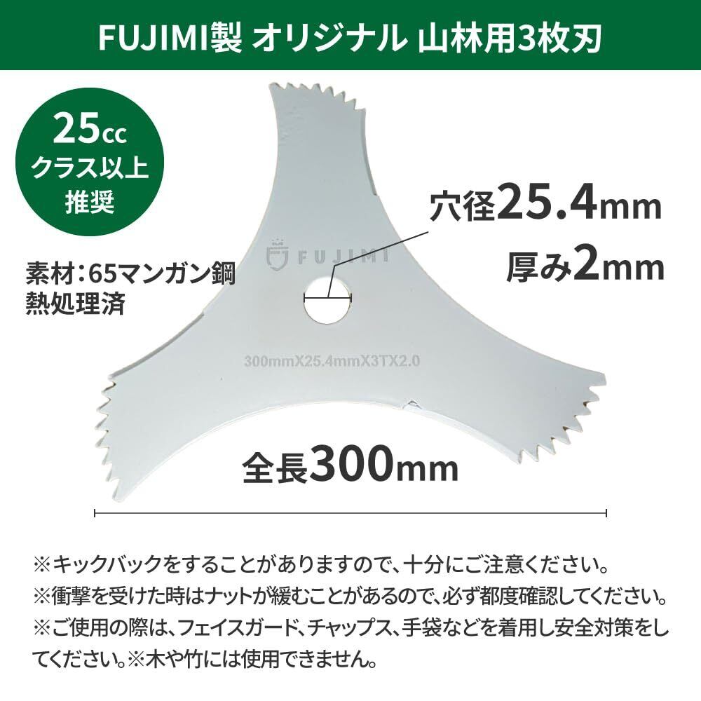 FUJIMI 3枚刃 山林用 厚み2mm ツル 草 刈払機 草刈 300mm 2mm 65マンガン鋼 合金鋼 高マンガン鋼