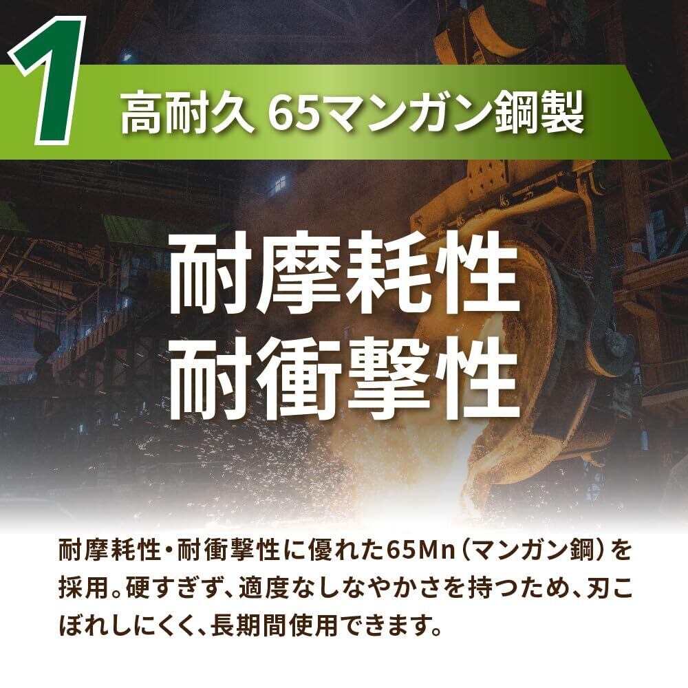高品質なチェーンソー替刃にも使われる65マンガン鋼(65mn)製で