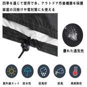 芝刈り機カバーは細工が精緻で、耐用年数が長く、摩耗に強い。草刈り機を風雨雪霜から全方位的に保護し、使用年限を延長し、外部を清潔に保つことができる。各タイプのアウトドア機器の使用に適しており、折りたたむと全くスペースを取らない。
