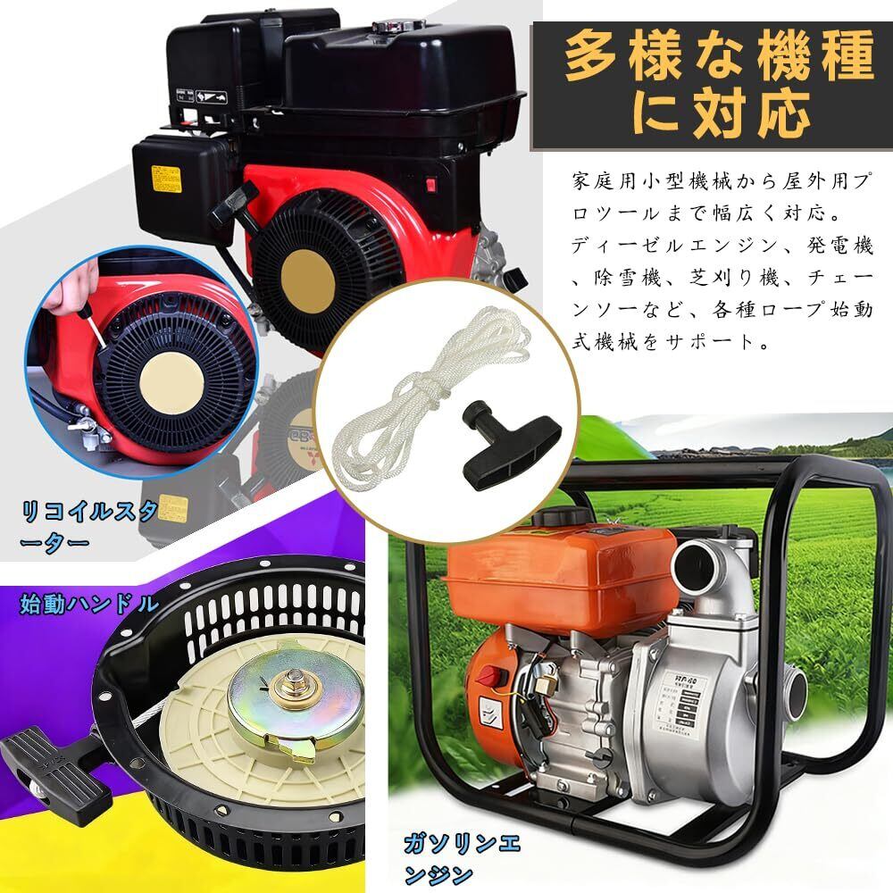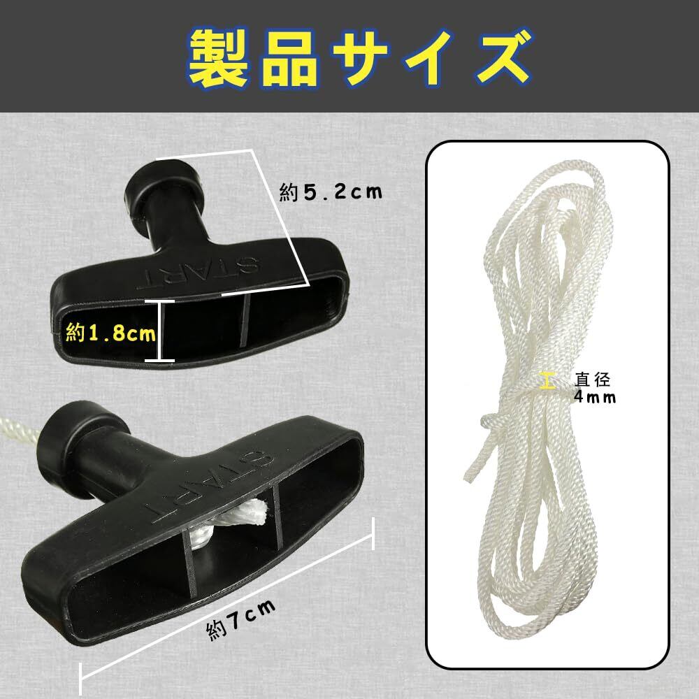 【多様な機種に対応、一本で様々なニーズを解決】ディーゼルエンジン、発電機、除雪機、芝刈り機、チェーンソーなど、様々なロープ始動式機器に対応。家庭用小型機械から屋外用プロツールまで幅広くマッチし、園芸メンテナンスや屋外作業など様々なシーンで実用的なアクセサリーです。
