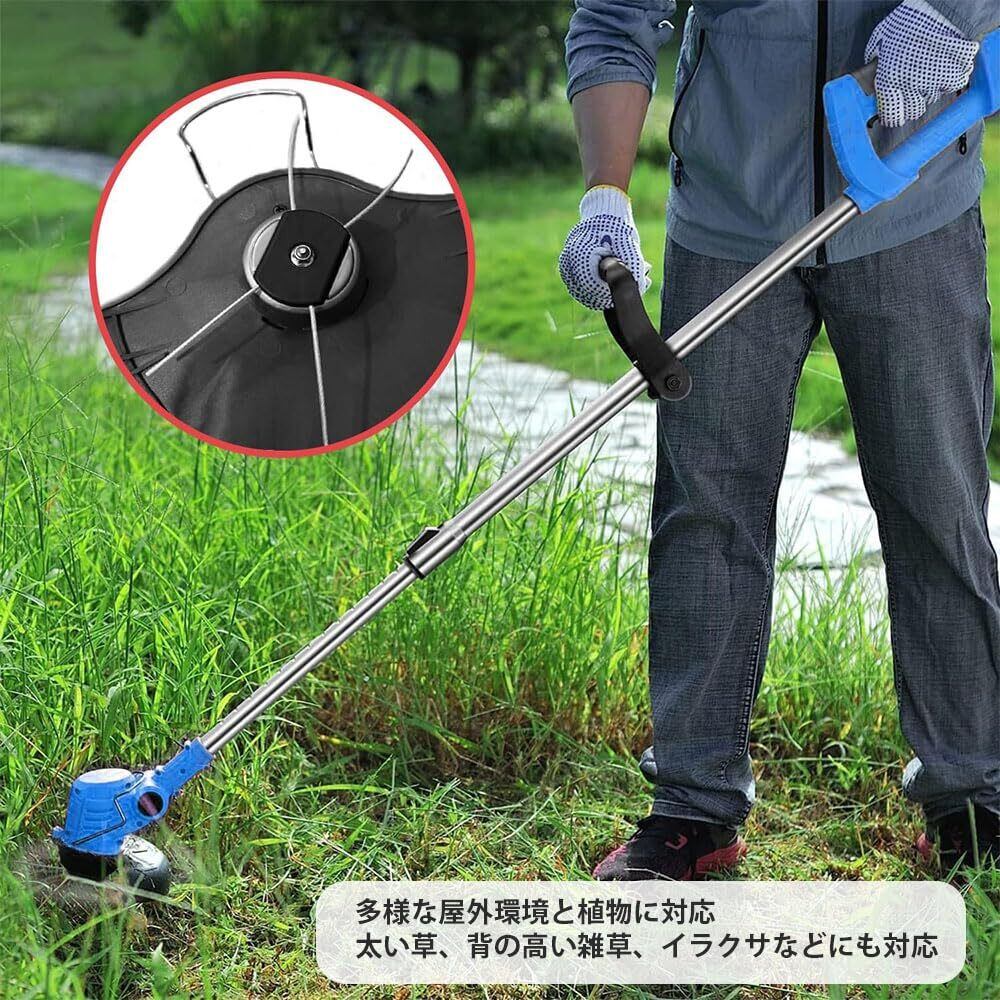 【作業効率向上のシンプル設計】芝刈り機稼働中に芝や低木を迅速かつ効率的に刈り取れるように設計されており、手間のかかる草刈り作業を大幅に軽減します。