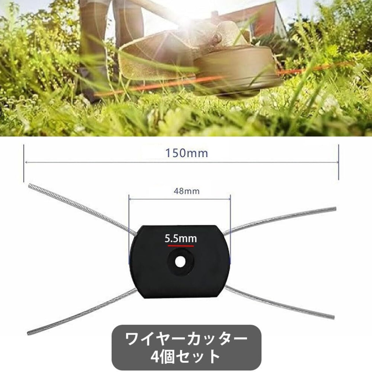 ワイヤーカッター 芝刈り機用 ユニバーサルロープ 4個セット 鋼線 草刈機 専用 交換部品 ナイロンコード 簡単装着 草刈機用アクセサリー 交換用ロープ 穴径5.5mm 150x5.5mm 草取り 防草 园芸 芝生管理 駐車場 歩道