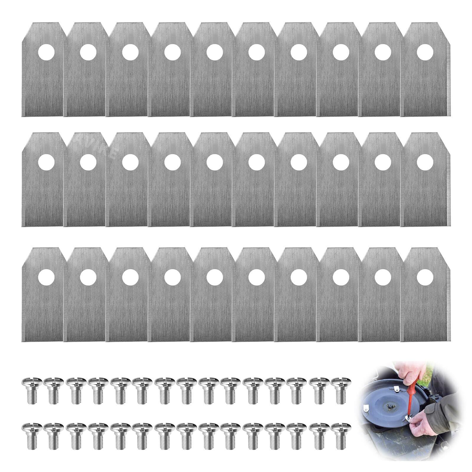 PAVIKE 芝刈り機ブレード 30個の交換用ブレード 草刈り機 替え刃 ステンレス鋼芝刈り機ブレード ロボット芝刈り機ブレードーデンとハスクバーナ自動車用 園芸 農業 歩道用 (ネジ付き/35*18*0.75mm)