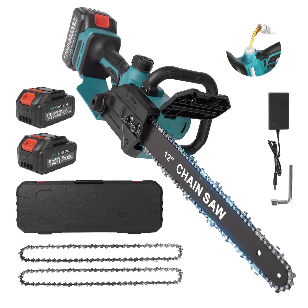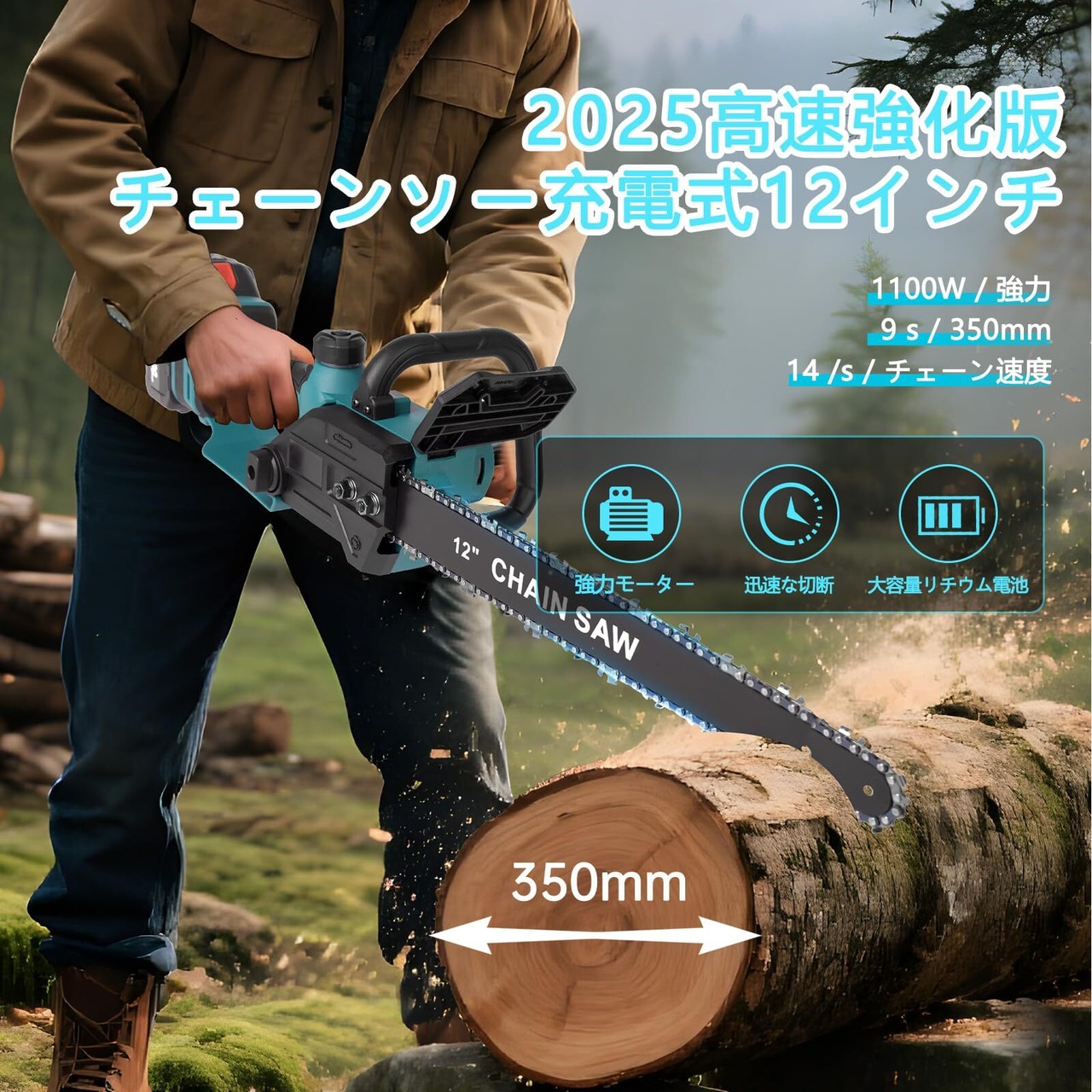 チェーンソー 充電式 12インチ【2025強化版高速】電動のこぎり切断径 350mm ブラシレスモーター 18v 互換 電動ノコギリ自動給油 4Ah電池2個 1.5kg軽量コードレス 片手 薪割り/薪作り/枝切り/庭木の剪定/竹の伐採収納ケース PSE、CE認証済み日本語取扱説明書