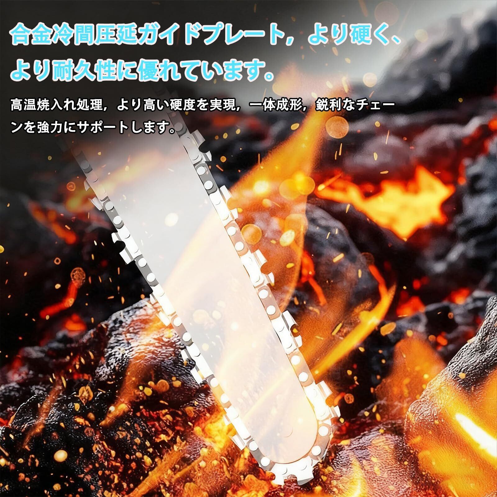 【高強度チェーン、自動給油】チェーンソー 充電式 の鋸刃は、優れた強度と耐摩耗性を備えた硬化材で作られており、チェーンの破損を防ぎます。直径35cmまでの丸太をわずか9秒で割ることができ、作業効率が向上します。自動給油システムにより、摩耗を軽減し、チェーンの寿命を延ばします。給油後は、従来機より20%速く切断できます。ご使用前に少量の潤滑剤を注入し、チェーンソーを始動して給油してください。
