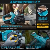 【革新的な超便利電動こぎり】このチェーンソーは、伝統型と大きく違った革新的改良を多数施されており、使い勝手が抜群になっています。自動給油機能が搭載されており、手動での給油調整が不要です。均一な給油により、高効率作業をサポートするだけでなく、ソーの寿命も大幅に延ばせます。また、ツールレス・チェーン・テンショニング機能を備えており、工具を使わずに誰でも簡単かつ迅速にチェーンの張力を調整でき、作業能率を飛躍的に高めます。さらに本体には残電量表示が付いており、残量が一目でわかるため、作業中に電池切れが起こることなく、作業のスムーズな進行をサポートします 。