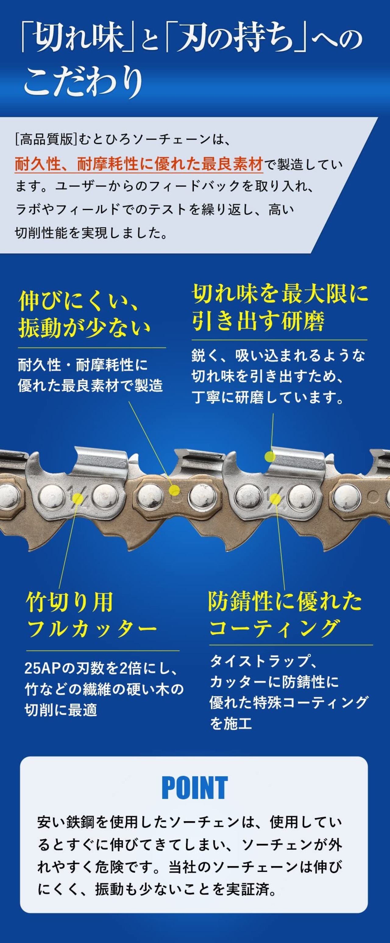 むとひろ製のチェーンソー替刃(チェーン刃)です。『むとひろ』は当店オリジナルブランドです。
