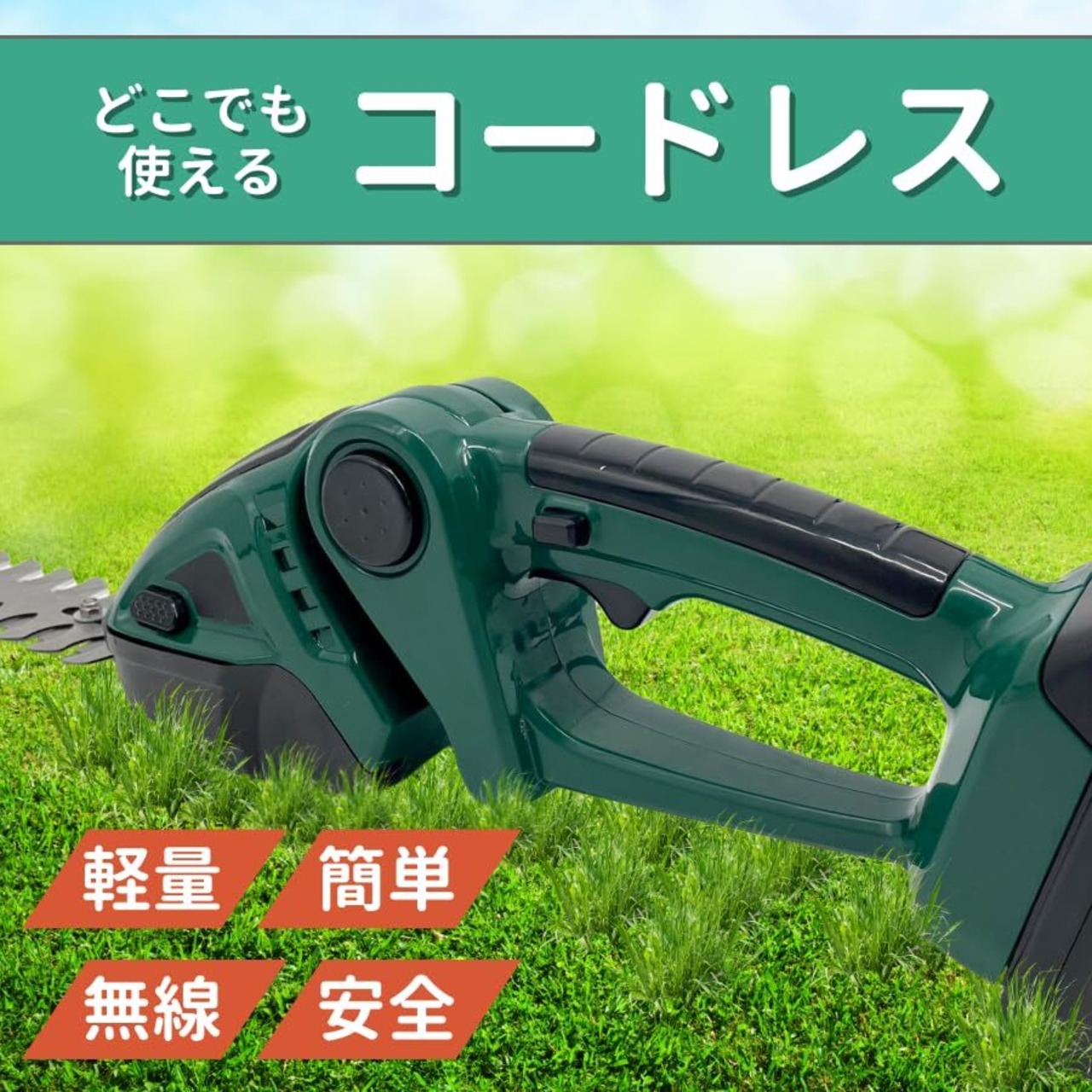 大宝堂 マキタ互換品 芝生 バリカン ヘッジトリマー 生垣 剪定 電動 替刃式 芝刈り機 草刈り機 充電式 18V 14.4V 18ボルト 14.4ボルト コードレス DIY 家庭用 電動工具 ※ バッテリー 充電器 別売り (Green)