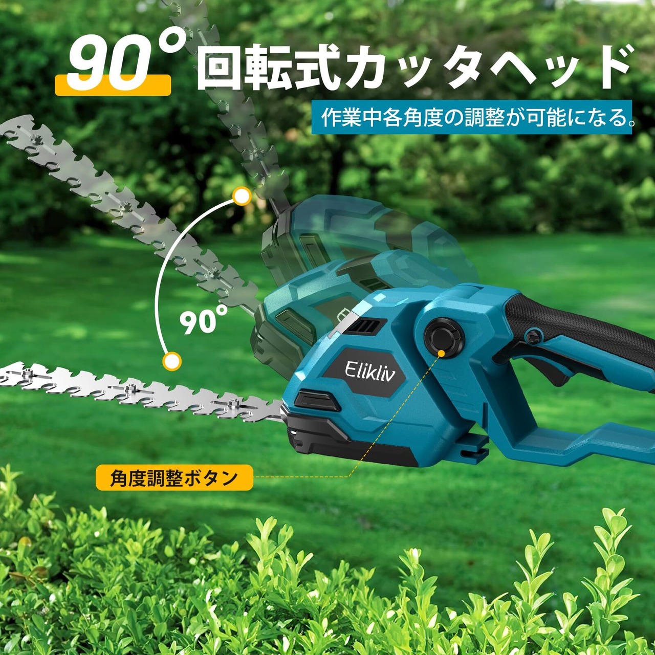 【人気商品】Elikliv ヘッジトリマー 電動芝生バリカン ヘッジトリマー 充電式 1台2役 芝刈り機 コードレス ガーデントリマー 両刃駆動 90°回転式カッタヘッド 強力 軽量 刈り込み機 生垣バリカン 庭木剪定 植木 園芸 枝切り 垣根 本体のみ・グラスレシーバー搭載