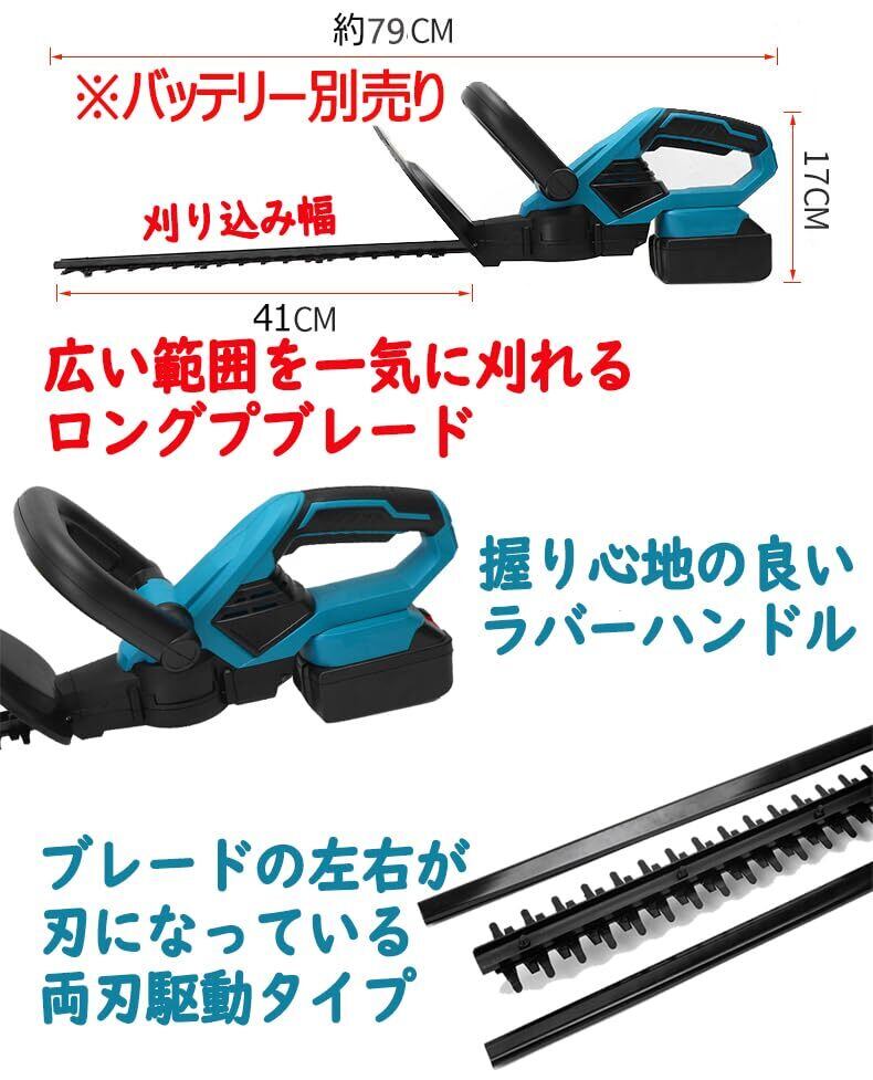 充電式 ヘッジトリマー 18V ガーデントリマー 刈込幅410mm マキタ 18V バッテリー 互換対応 庭木バリカン 垣根 電動植木バリカン 本体のみ【バッテリー・充電器 別売】2年間メーカー