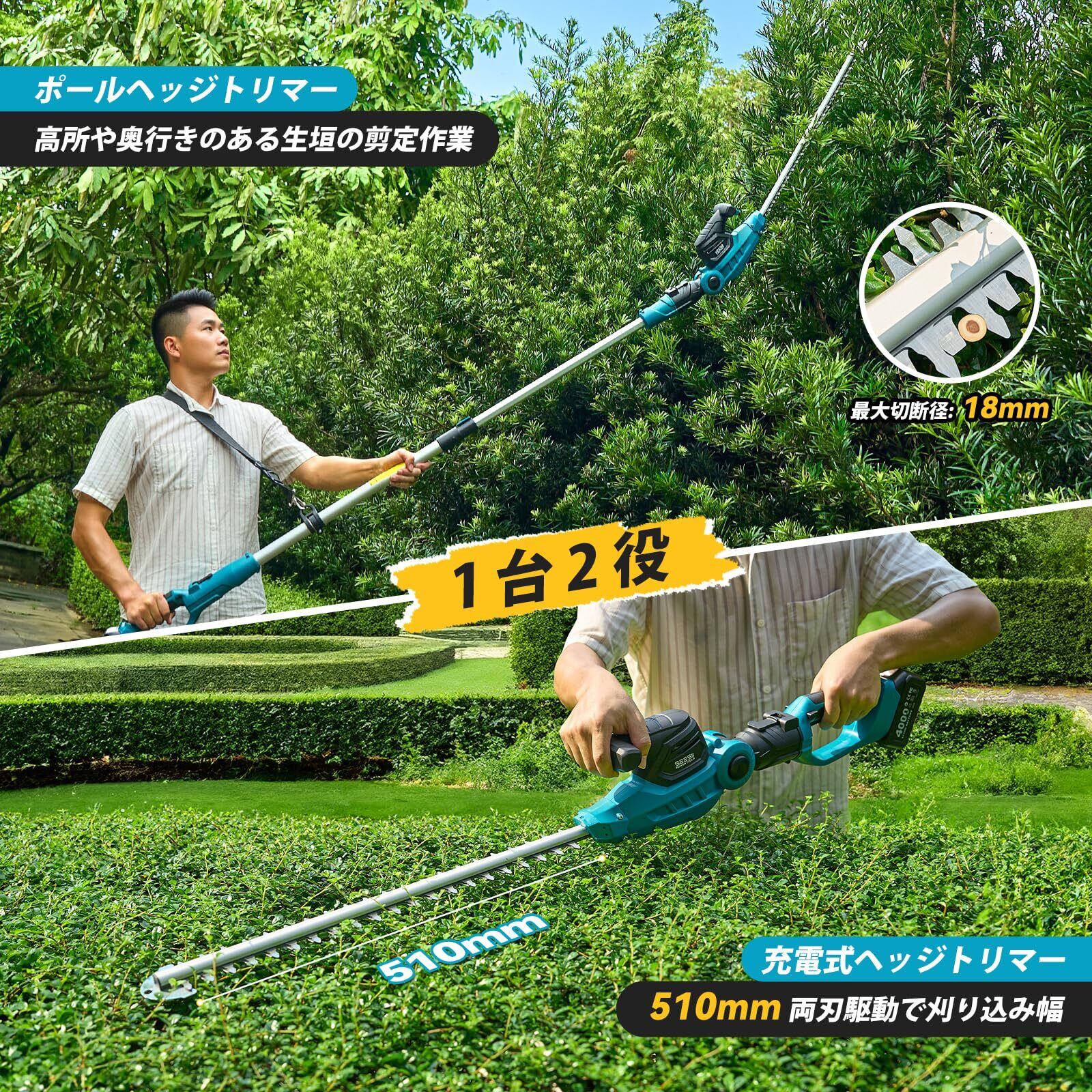 【数量限定】【2025新型】SEESII ヘッジトリマー 充電式 ポールヘッジトリマー 1台2役 たかえだ 充電式剪定トリマー 510mmのトリマー刈幅着脱伸縮式 210-260cm長さ無段階調節と0°~135°ヘッジ角度調節 4000mAh大容量バッテリー 芝生を刈る草刈り機 庭木や生垣の剪定バリカン 植木手入れ 高枝伐採 木工切断 園芸 品番L60