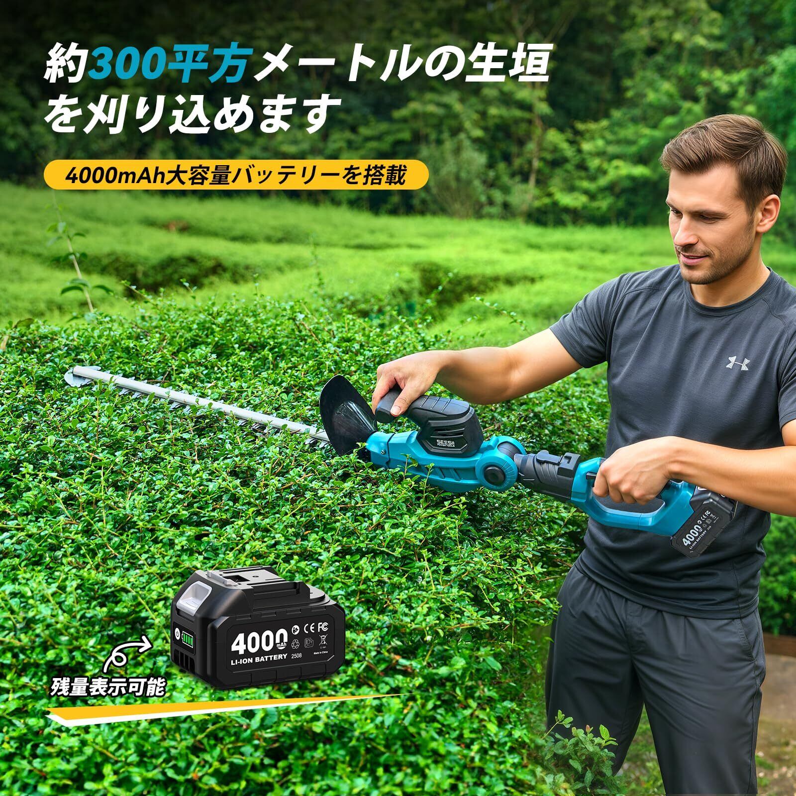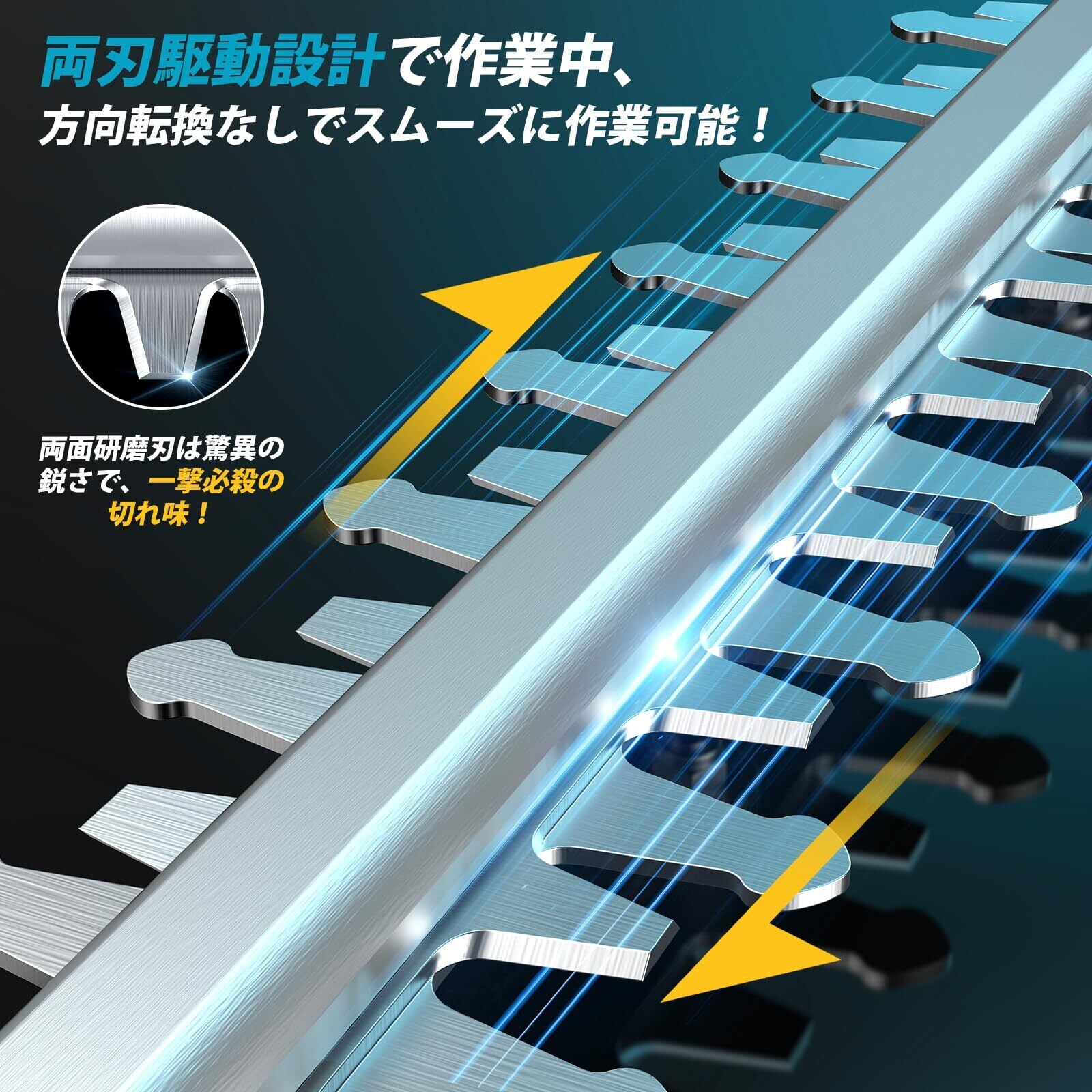 【510mm 広幅刈り込み + 4000mAh長续航】この充電式ヘッジトリマーで、生垣整理が一瞬で楽になります!510mm の広い刈り込み幅に加え、両刃駆動設計を採用しているため、方向転換する必要がなくスムーズに作業でき、手間を大幅に省けます。両面研磨された刃は鋭さ抜群で、最大 18mm 径の枝でも一撃で切断できるため、切れ味は超優れたものです。さらに、4000mAh の大容量バッテリーを搭載し、残量表示機能で電気切れの心配はありません。一回の充電で約 300 平方メートルの生垣を刈ることができ、家庭の庭先や小規模園芸作業にぴったりです。