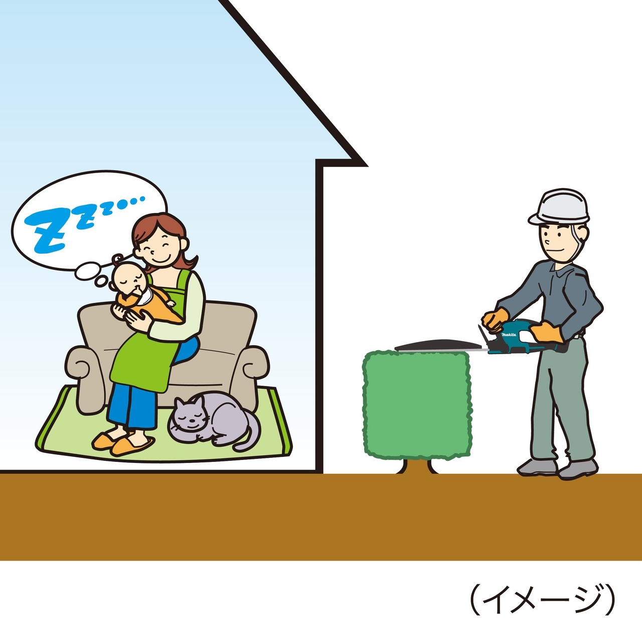 低騒音。騒音が気になる現場でも安心。[騒音値(LP):79dB(A)]EN62841-4-2準拠。※マキタ、騒音対策前の既存機と比較した場合。人により騒音の感じ方に差が出る場合があります。