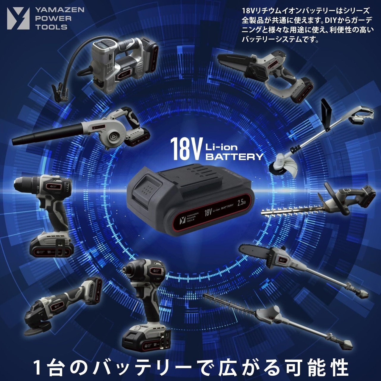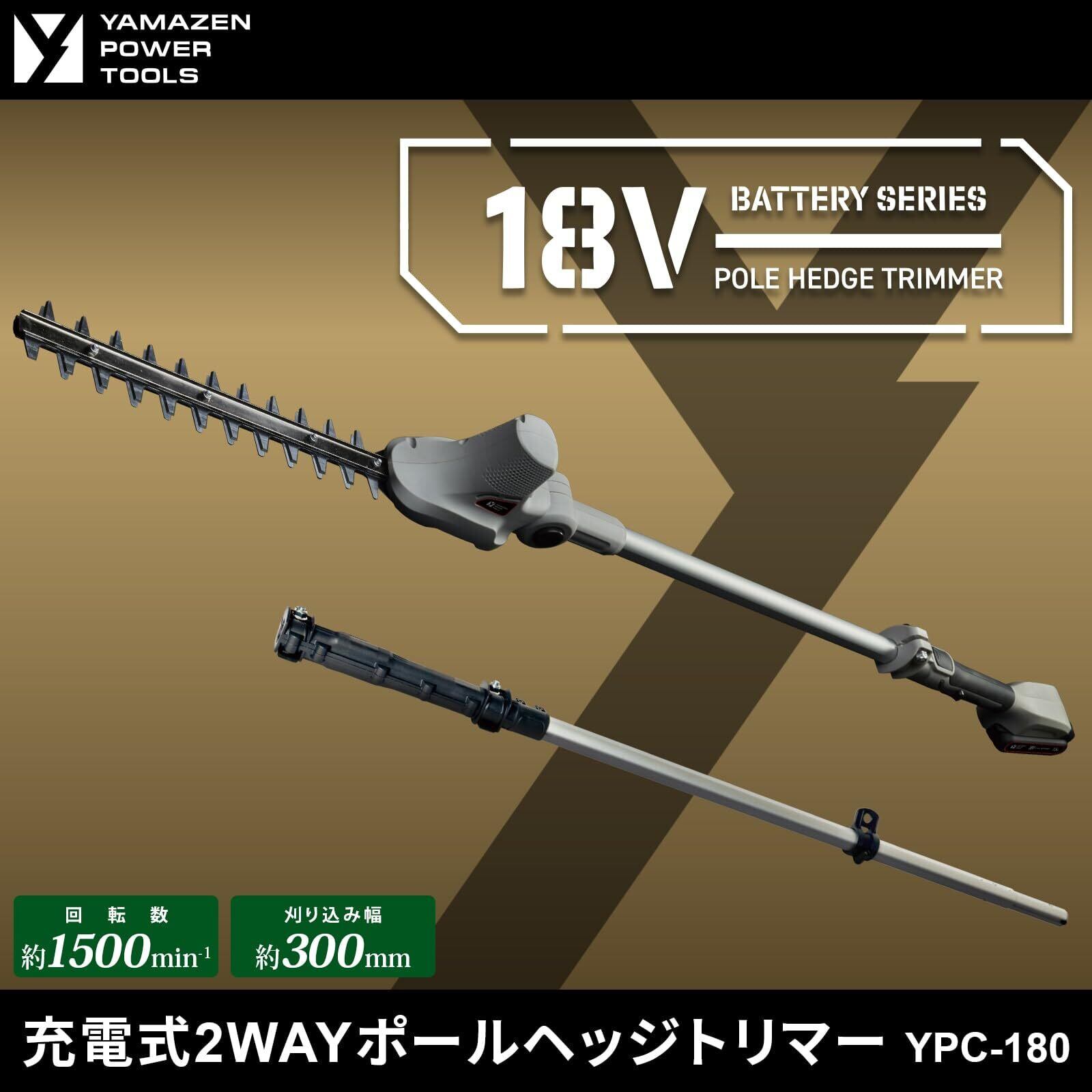 山善(YAMAZEN) 18V ヘッジトリマー 2WAYポールヘッジトリマー 充電式 本体のみ(バッテリー・充電器別売) 刈込幅約300mm 両刃タイプ 庭木 剪定 生垣 刈り込み YPH-180 【18V共通バッテリーシリーズ】